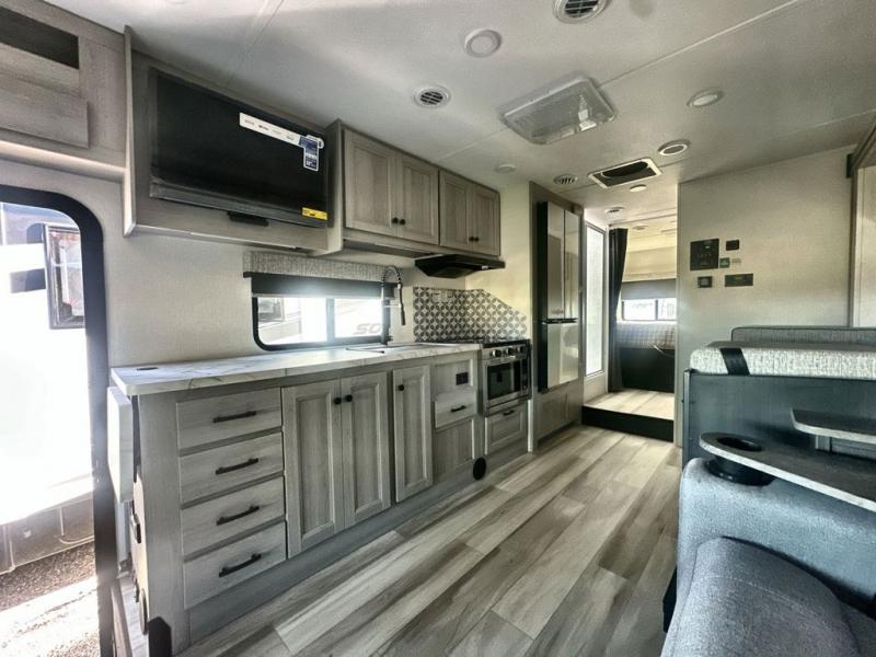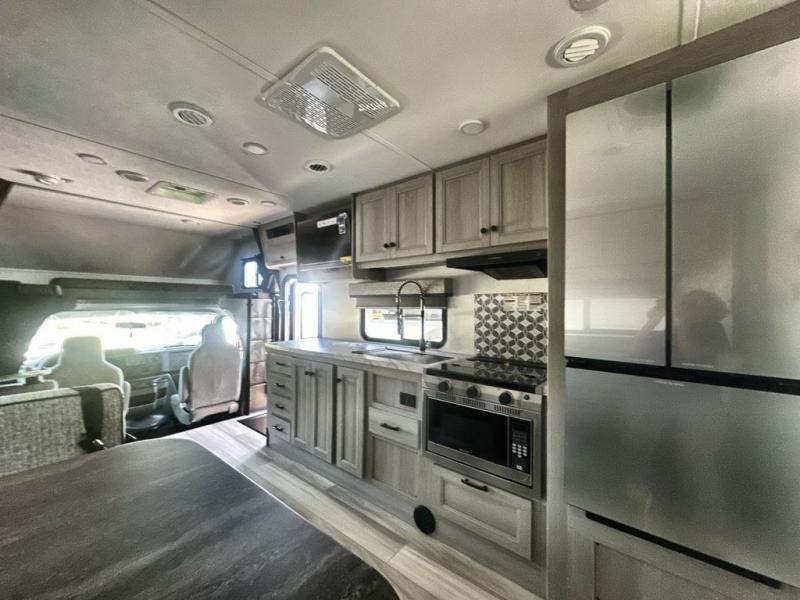 Each one of these Forest River Solera Class C gas and diesel motorhomes proclaim the style of a new generation! There is a convenient keyless entry, a backup and side view camera system, and a 10" in-dash touch screen Apple Carplay/Android Auto radio. The Ford E350/Chevy 3500, Ford E450 or Mercedes-Benz Sprinter 3500 chassis also help with the smooth ride. Each model includes aluminum framed laminated sidewalls, superlite composite substrate, and a gel coat exterior fiberglass for added durability. Inside, you will enjoy the MCD roller shades, residential style furniture with Fortress stain resistant fabrics, soft touch self-closing drawer guides, and many more comforts. And you can stay connected where ever you go with the Winegard Air 360+ antenna with Gateway 4G WiFi capability.