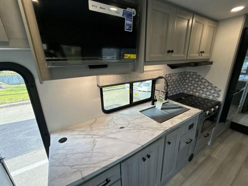 Each one of these Forest River Solera Class C gas and diesel motorhomes proclaim the style of a new generation! There is a convenient keyless entry, a backup and side view camera system, and a 10" in-dash touch screen Apple Carplay/Android Auto radio. The Ford E350/Chevy 3500, Ford E450 or Mercedes-Benz Sprinter 3500 chassis also help with the smooth ride. Each model includes aluminum framed laminated sidewalls, superlite composite substrate, and a gel coat exterior fiberglass for added durability. Inside, you will enjoy the MCD roller shades, residential style furniture with Fortress stain resistant fabrics, soft touch self-closing drawer guides, and many more comforts. And you can stay connected where ever you go with the Winegard Air 360+ antenna with Gateway 4G WiFi capability.
