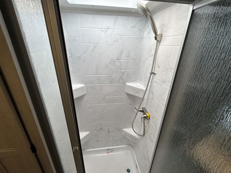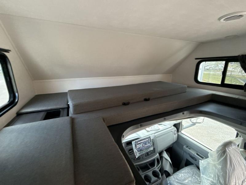 Pack your bags and pick your favorite destination then head out in this motorhome! The rear private bedroom has a 60" x 74" queen bed slide for more interior space, and a linen closet with wardrobes on either side of it. There is also a split-style bath with a private toilet and sink, and the shower is right across the hall. Prepare your best home cooked meals using the three burner cooktop, enjoy dining at the U-shaped dinette, and store any leftovers in the 10.7 cu. ft. 12V refrigerator. You will also appreciate the flip-up countertop for more meal prepping space. Relax each evening on the 66" sofa, or you can replace it for the optional power theater seating. There is even a 60" x 80" bunk over the cab for extra sleeping or storage space!