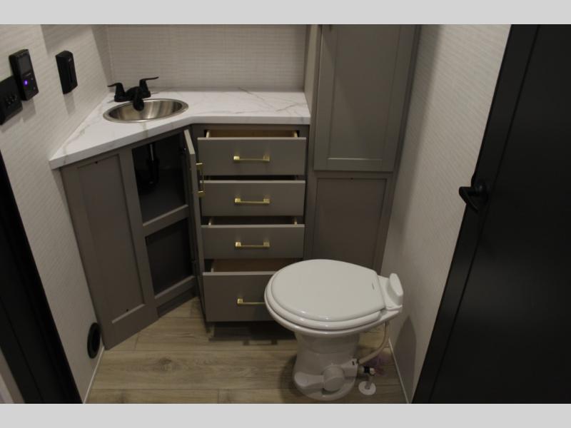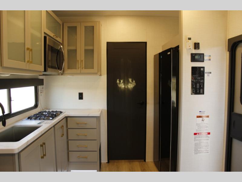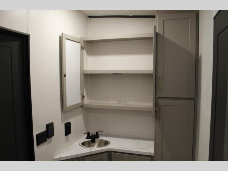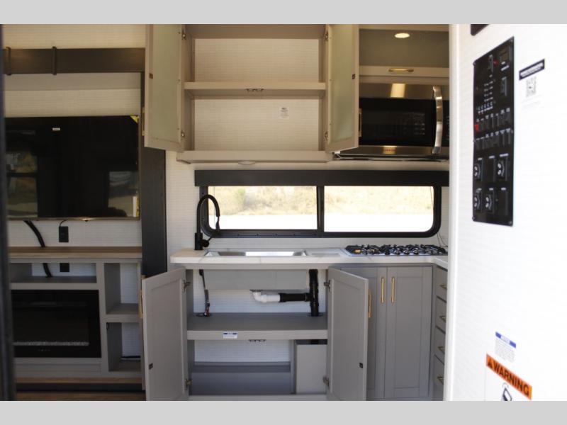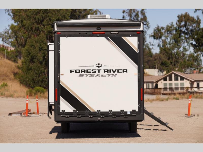 With any Stealth toy hauler by Forest River you will enjoy innovative floorplans and "off-road approved" chassis to take your adventures up a notch! There are four different build levels to choose from to best fit your needs, budget, and style. Each travel trailer and fifth wheel include flipped axles with no interior drive on wheel wells, Flip Tread solid entry steps, and tie-downs mounted to steel throughout to keep toys secure on the way to the campground. The power tongue jack will make it easier than ever to hitch up and go, and the Lippert ladder prep means you can add this option to easily access the roof. A 40 gallon fuel station comes standard to keep your toys ready to go when you are, and the dual 20 lbs. propane tanks will let you hook up the grill to make dinner for your whole crew. Some of the other convenient features include a matching spare tire if an unfortunate flat happens, a 335W solar panel, and a 1.5 cu. ft. convection microwave. And don't forget about the available options that will allow you to customize your toy hauler exactly how you want it!