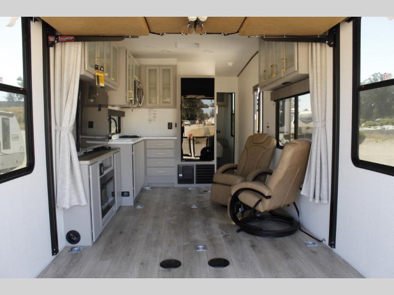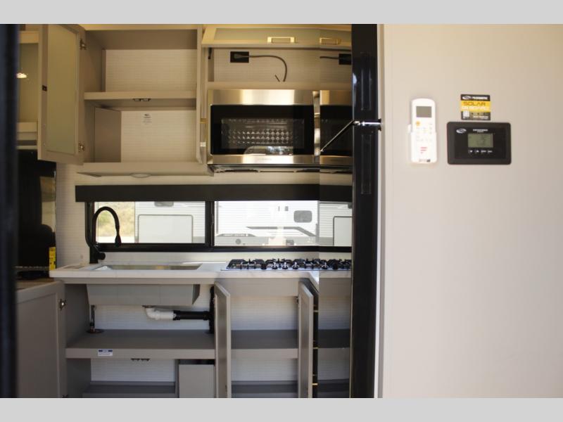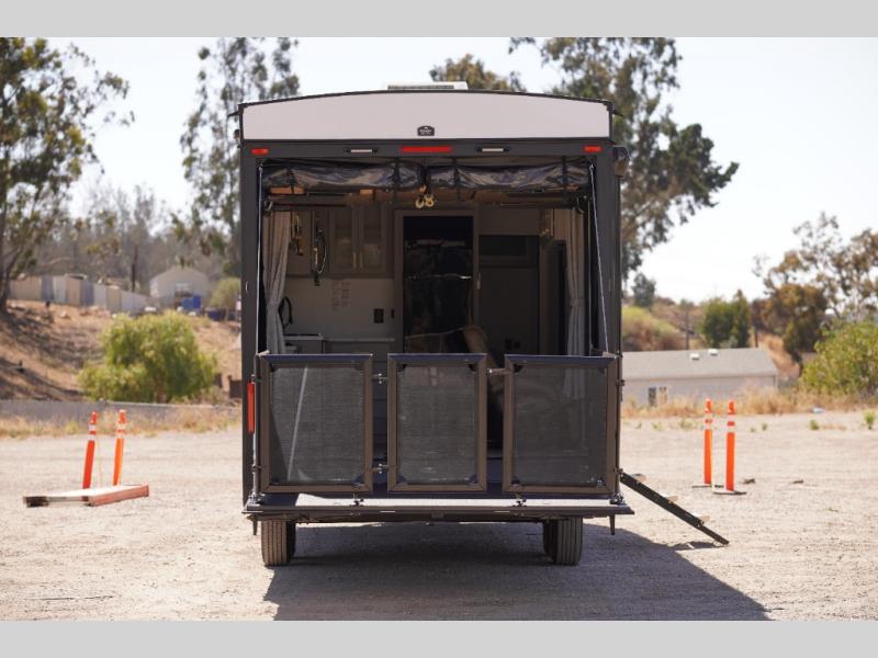 With any Stealth toy hauler by Forest River you will enjoy innovative floorplans and "off-road approved" chassis to take your adventures up a notch! There are four different build levels to choose from to best fit your needs, budget, and style. Each travel trailer and fifth wheel include flipped axles with no interior drive on wheel wells, Flip Tread solid entry steps, and tie-downs mounted to steel throughout to keep toys secure on the way to the campground. The power tongue jack will make it easier than ever to hitch up and go, and the Lippert ladder prep means you can add this option to easily access the roof. A 40 gallon fuel station comes standard to keep your toys ready to go when you are, and the dual 20 lbs. propane tanks will let you hook up the grill to make dinner for your whole crew. Some of the other convenient features include a matching spare tire if an unfortunate flat happens, a 335W solar panel, and a 1.5 cu. ft. convection microwave. And don't forget about the available options that will allow you to customize your toy hauler exactly how you want it!