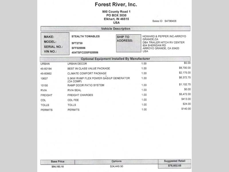 Forest River Stealth toy hauler 2730SLX highlights: