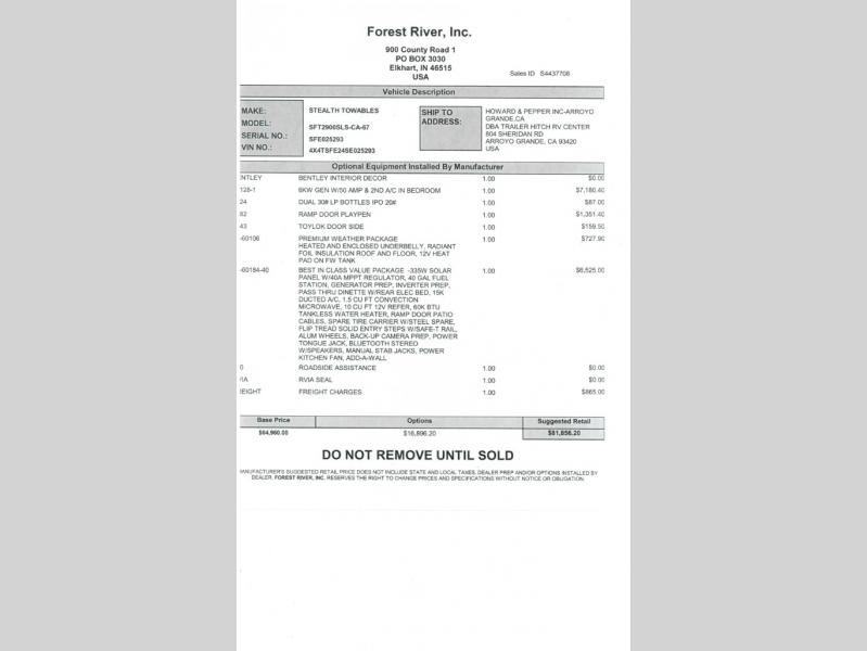 New 2025 Forest River RV Stealth 2900SLS Toy Hauler Travel Trailer