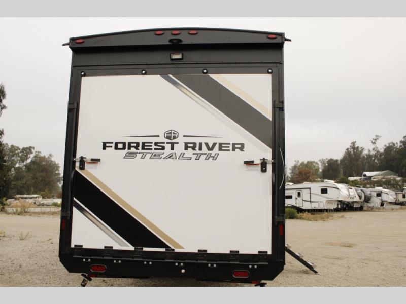With any Stealth toy hauler by Forest River you will enjoy innovative floorplans and "off-road approved" chassis to take your adventures up a notch! There are four different build levels to choose from to best fit your needs, budget, and style. Each travel trailer and fifth wheel include flipped axles with no interior drive on wheel wells, Flip Tread solid entry steps, and tie-downs mounted to steel throughout to keep toys secure on the way to the campground. The power tongue jack will make it easier than ever to hitch up and go, and the Lippert ladder prep means you can add this option to easily access the roof. A 40 gallon fuel station comes standard to keep your toys ready to go when you are, and the dual 20 lbs. propane tanks will let you hook up the grill to make dinner for your whole crew. Some of the other convenient features include a matching spare tire if an unfortunate flat happens, a 200W or 335W solar panel, and a 1.5 cu. ft. convection microwave. And don't forget about the available options that will allow you to customize your toy hauler exactly how you want it!