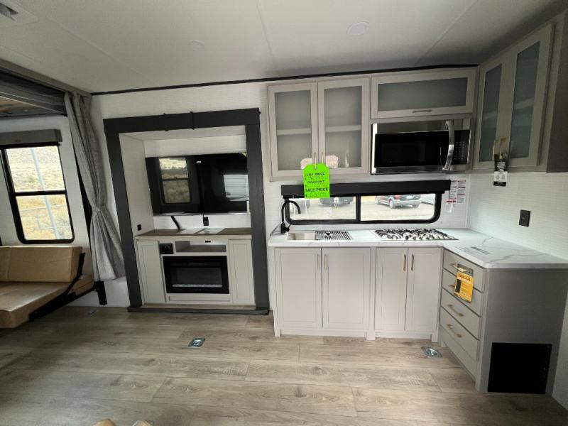 Toward the front, the private bedroom offers a quiet retreat with a walk-around bed and ample storage for extended trips, while the well-appointed bathroom provides the everyday convenience of a residential-style shower and clean, functional design. With its blend of rugged capability and home-like comfort, the Stealth SFT2600 feels equally ready for off-grid weekends or longer stays at your favorite destinations. It’s a welcoming, move-in-ready basecamp for anyone looking to bring both their toys and their creature comforts along for the journey.