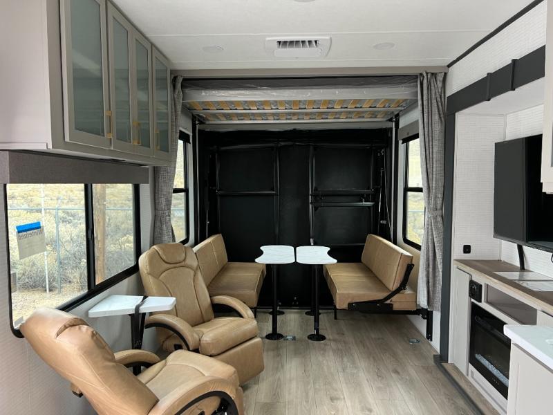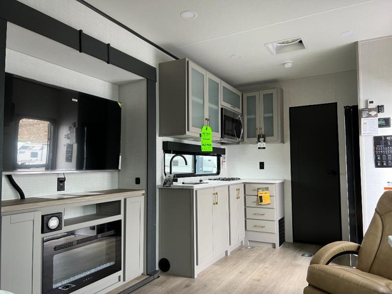 Step into the 2025 Stealth SFT2600 and you’re welcomed by a spacious, open toy hauler layout designed to handle adventure while still feeling inviting and livable. The main garage area transitions seamlessly into a comfortable living space, offering room for your gear during the day and transforming into a relaxing lounge or dining area once everything is unloaded. Large windows bring in natural light, and the kitchen is thoughtfully arranged with modern appliances, generous counter space, and practical storage, making it easy to prepare meals without sacrificing comfort.