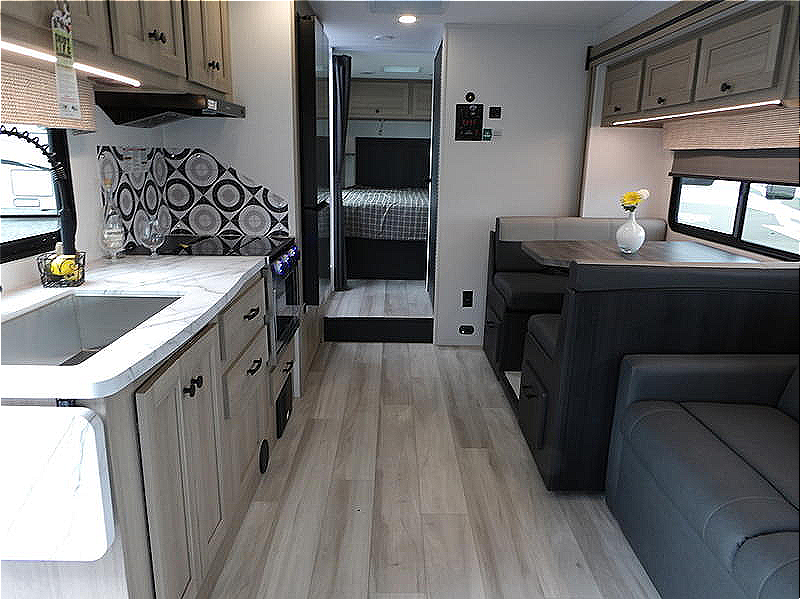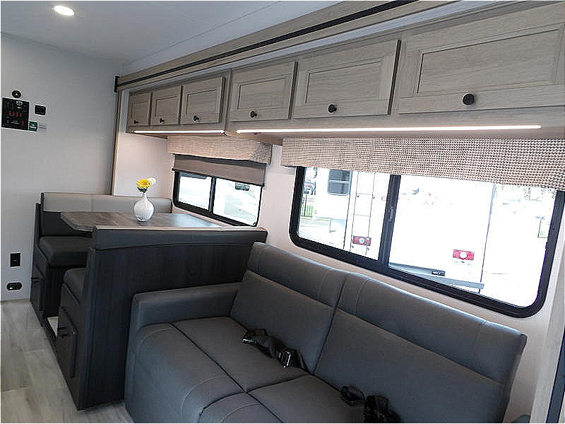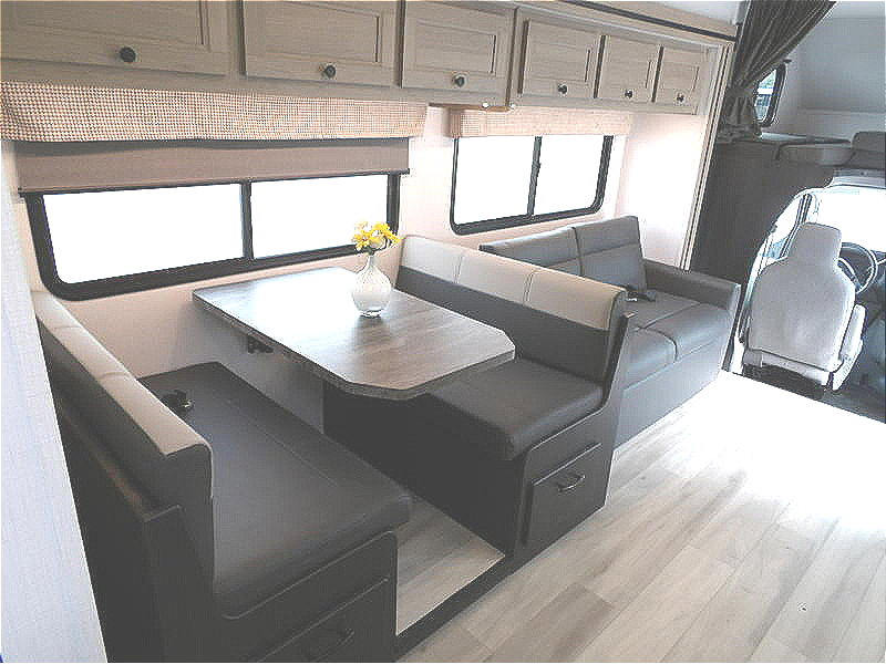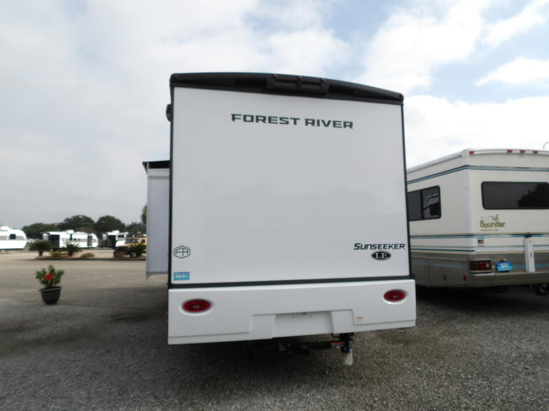 Each Forest River Sunseeker LE Class C gas motorhome comes with the LE Premier Package for your benefit! This package includes great features like backup/sideview cameras with rearview mirror monitor, a fiberglass front cap, an in-dash premium sound system with Bluetooth, a Winegard Air 360+ antenna with preparation for Gateway 4G Wi-Fi, toppers for the slide outs, and a 15,000 BTU ceiling-ducted, ultra-quiet roof air with heat pump. All of these premium features rest on a Superlite composite substrate, 2"-thick gel-coat sidewalls with lightweight composite waterproof material, block-foam insulation, and a fiberglass roof. There is a satellite/cable connection, a 30,000 BTU furnace, a Maxx Air multi-speed power fan, and black-out roller shades.