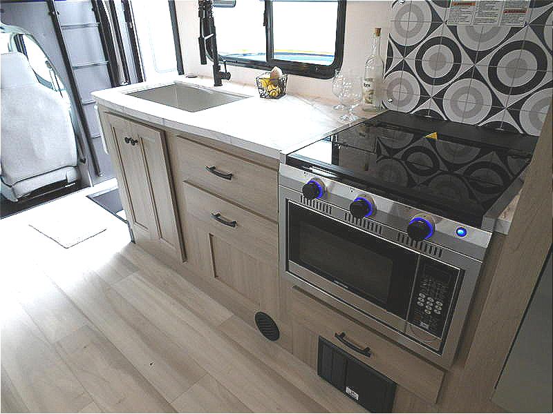 - LE PREMIER PACKAGE BACK UP CAMERA/SIDE VIEW CAMERAS W/MONITOR, FIBERGLASS FRONT CAP, IN DASH PREMIUM SOUND SYSTEM W/BLUETOOTH (N/A ON CHEVY), UNDERMOUNT 1.3 STAINLESS STEEL CONVECTION MICROWAVE, 10 CUFT 12V REFER, WINEGARD 360+ W/GATEWAY WIFI PREP, SLIDEROOM TOPPERS, ALUM RUNNING BOARDS, ARTIC PKG, 15K AC W/HEAT PUMP