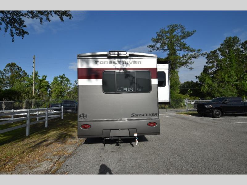 - Sunseeker Premium Features: Enjoy premium touches like LED lighting, blackout roller shades, a 12V TV, USB charging stations, Arctic Package for all-season use, and the Sunseeker’s unique split-level design that offers maximum headroom in the living area and a more streamlined profile overall.