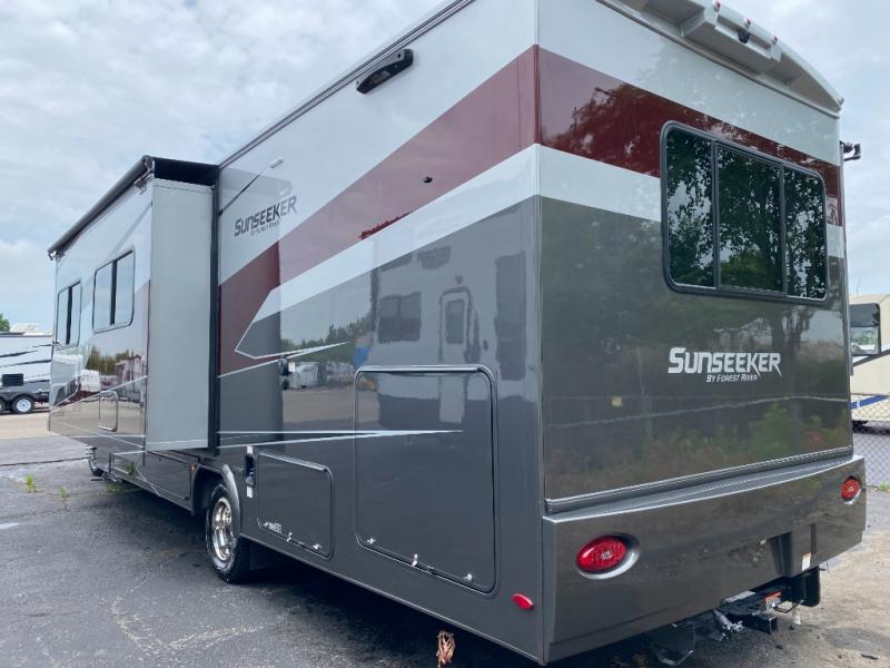 With any Sunseeker Classic Class C gas motorhome by Forest River, you will enjoy more features and quality construction at a great value! Each model comes standard with a fiberglass roof and 2" aluminum framed laminated sidewalls for maximum durability. The Winegard Air 360+ digital antenna is your all-in-one solution for your internet, TV, and FM signal needs, and you have Gateway 4G Wi-Fi capability too. The exterior has an outside shower, heated/enclosed tanks, Rotocast storage compartments, and a power awning with an LED light strip to name a few conveniences. Each drive will be made easy thanks to a 10" touchscreen CarPlay/Android radio with USB and Bluetooth, backup camera/side view cameras with a 3-way monitor, and Ultraleather seating for added comfort. You'll also love the black out roller shades, soft touch self-closing drawer guides, oxygen-infused shower head with a flexible extension, and many more interior comforts!
