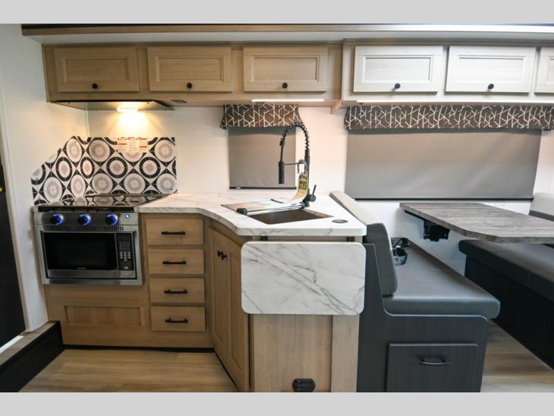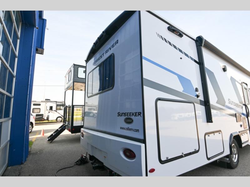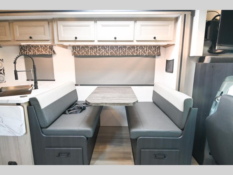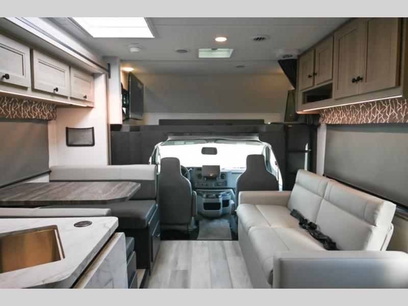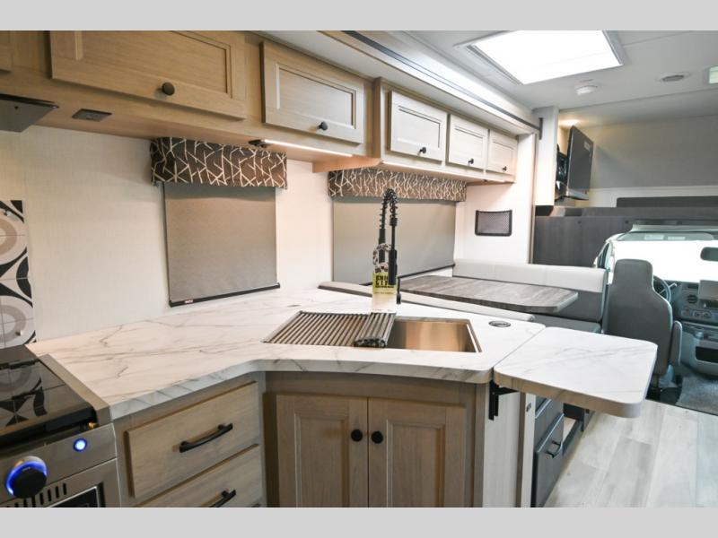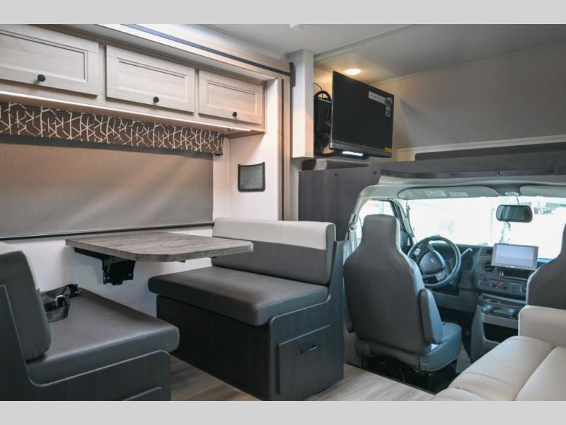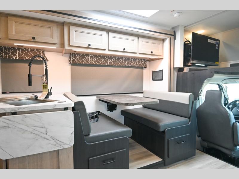 With any Sunseeker Classic Class C gas motorhome by Forest River, you will enjoy more features and quality construction at a great value! Each model comes standard with a fiberglass roof and 2" aluminum framed laminated sidewalls for maximum durability. The Winegard Air 360+ digital antenna is your all-in-one solution for your internet, TV, and FM signal needs, and you have Gateway 4G Wi-Fi capability too. The exterior has an outside shower, heated/enclosed tanks, Rotocast storage compartments, and a power awning with an LED light strip to name a few conveniences. Each drive will be made easy thanks to a 10" touchscreen CarPlay/Android radio with USB and Bluetooth, backup camera/side view cameras with a 3-way monitor, and Ultraleather seating for added comfort. You'll also love the black out roller shades, soft touch self-closing drawer guides, oxygen-infused shower head with a flexible extension, and many more interior comforts!