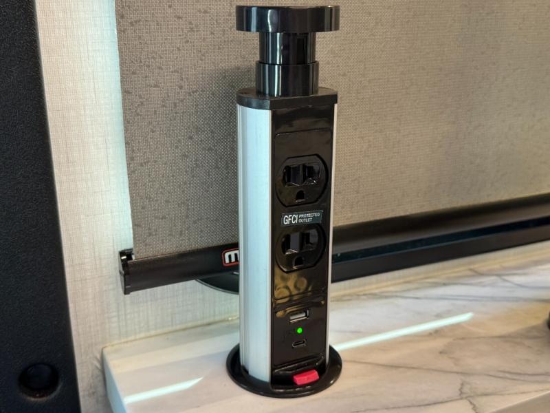 Construction & Exterior: Gel coat fiberglass exterior, laminated sidewalls, block-foam insulation, slide-out awnings, tinted windows, rotocast storage compartments, LED awning light strip, etc.
