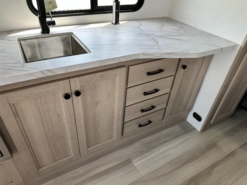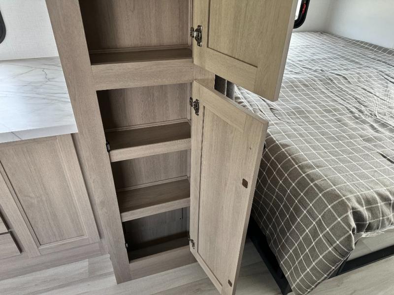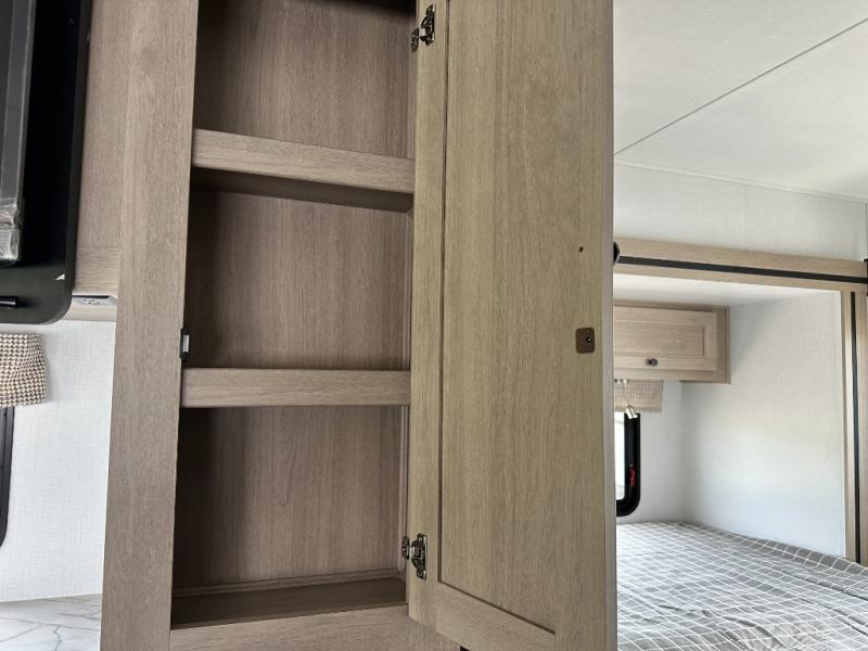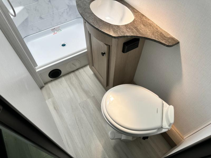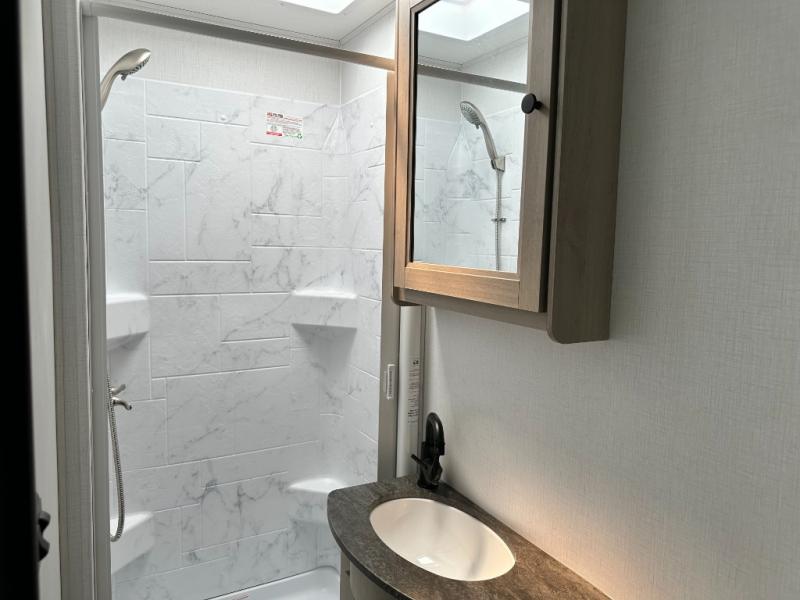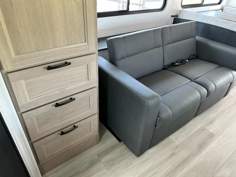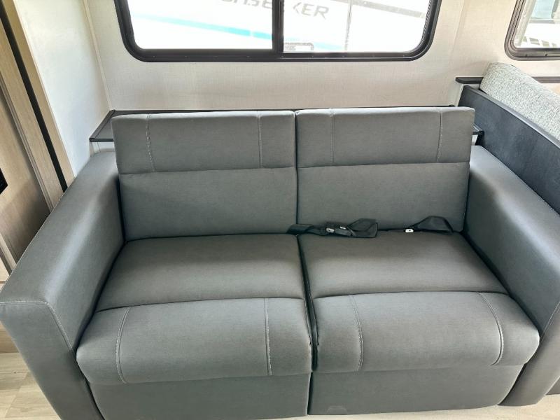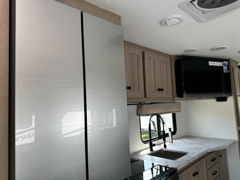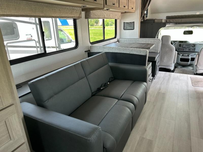 Don't make the mistake of passing up this Sunseeker LE Class C gas motorhome! There is a full bathroom with a shower skylight, oxygen-infused shower head with flexible extension, and an electric roof fan, and the bathroom is right next to the bedroom for convenience. The pantry, linen closet, wardrobe, and overhead storage offer you places to tuck away your belongings, and there are also two large storage drawers in the booth dinette as well. While you're resting on the sofa, you can watch the 12V LED TV, or you can chat with the chef who is preparing dinner on the recessed three-burner range or in the convection microwave.