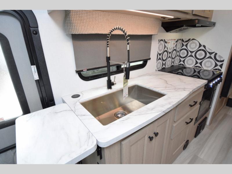 - Flip-Up Countertop: The flip-up countertop in the kitchen gives you extra space for food prep when you need it, without sacrificing the compact design of the motorhome.