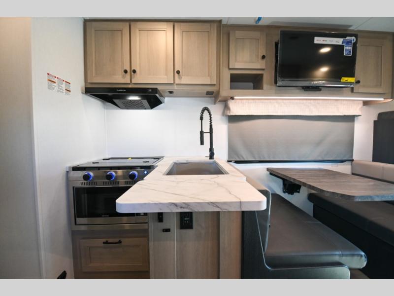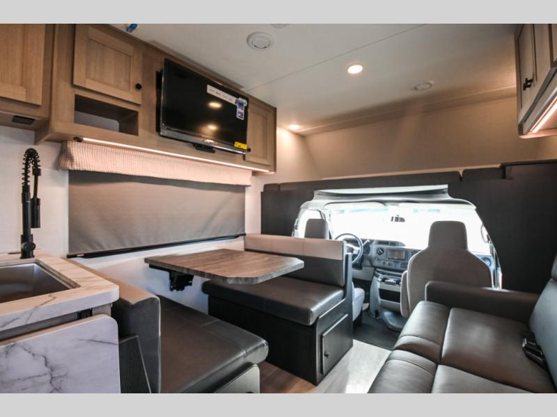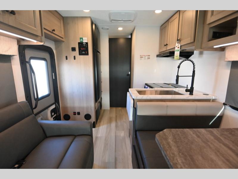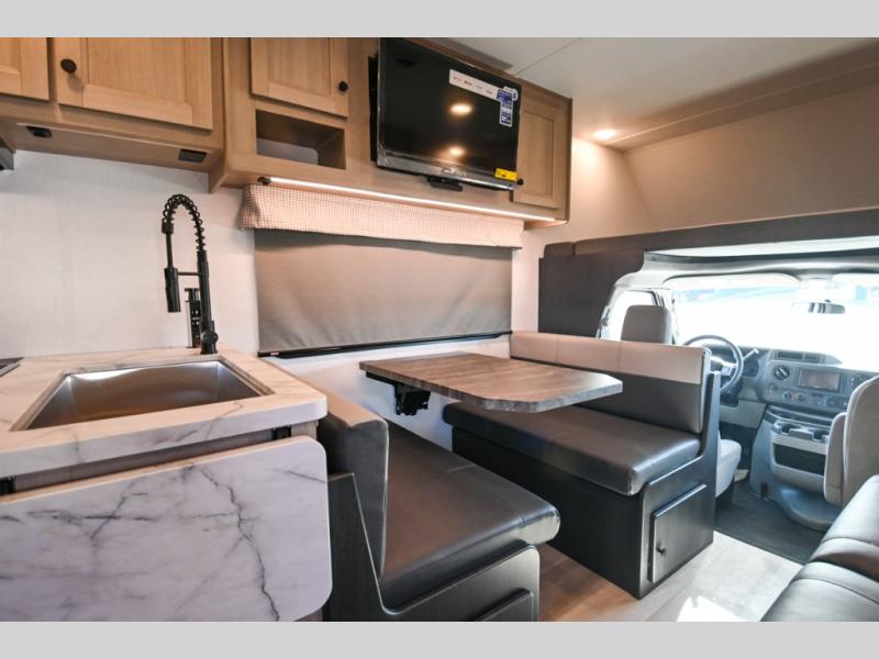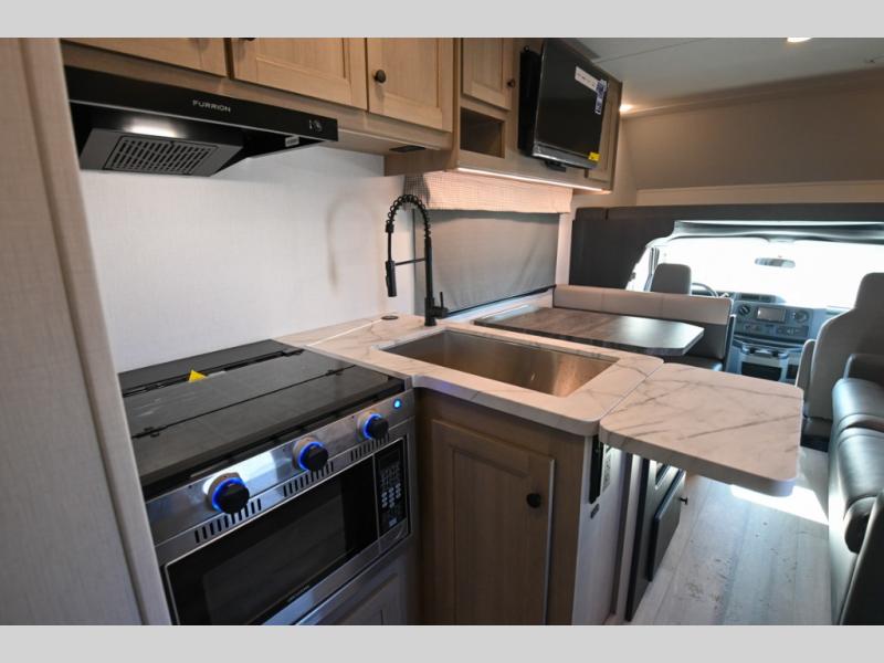 This Sunseeker LE Class C gas motorhome will allow you to travel to other states with your favorite people beside you! You can take a moment to enjoy a fresh cup of coffee in the morning while sitting at the booth dinette or on the sofa, or you can spend a little extra time creating a hearty breakfast in the kitchen on the recessed three-burner range. The 10.7-cubic foot refrigerator will store your cheese and milk, and the convection microwave will heat up leftovers with ease. The separated bathroom leads into the rear bedroom where you will find an RV queen bed with wardrobes on either side, and you can also head outside to enjoy the 18' electric awning with LED lights before bed.