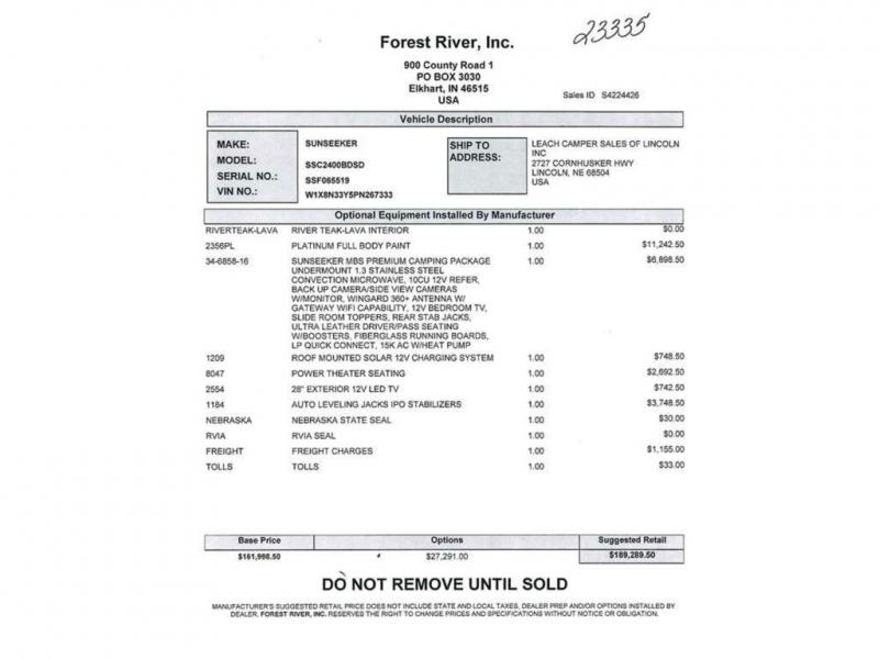 Forest River Sunseeker MBS Class C diesel motorhome 2400DSB highlights: