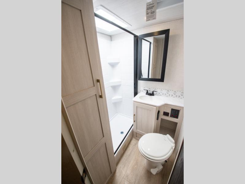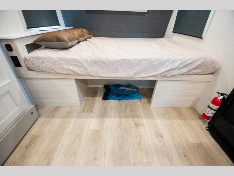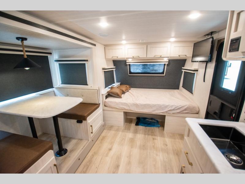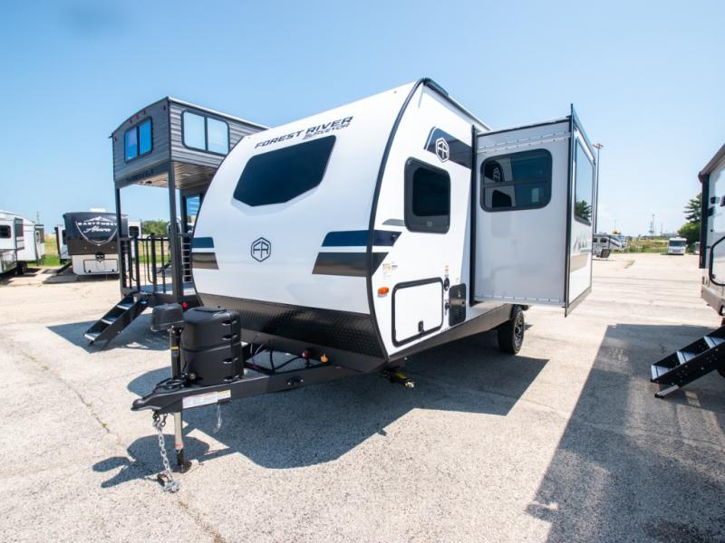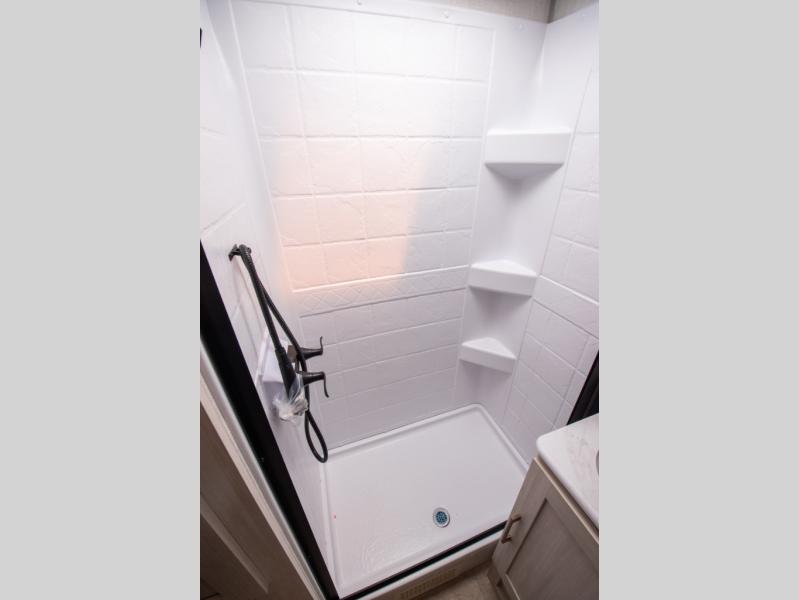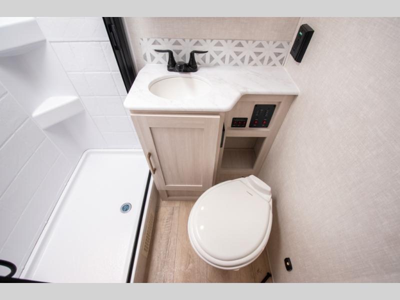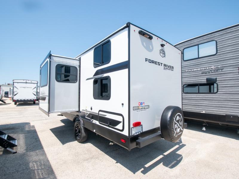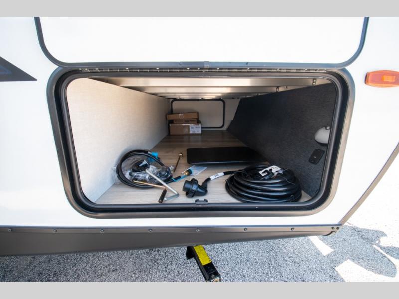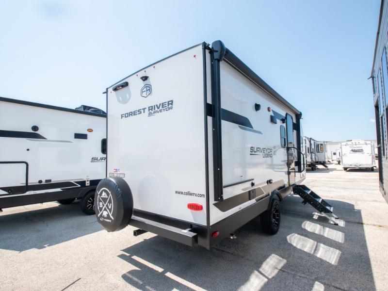 With any Surveyor Legend travel trailer by Forest River you will enjoy quality craftsmanship, convenient amenities, and at-home comforts. The Azdel composite walls provide a longer-lasting trailer, and the power tongue jack with a hitch light will get you back on the road in no-time. There are also Goodyear tires and a tire pressure monitoring system for hassle-free towing. Each model includes the Surveyor Legend Package that comes standard with oversized dinette storage access doors, front slam latch baggage doors, plus an automotive style tinted front windshield. You'll appreciate camping with a tankless water heater for endless hot showers, a 2" accessory hitch to bring bikes along, plus carpet-free interiors and a central vacuum system for easy clean up.
