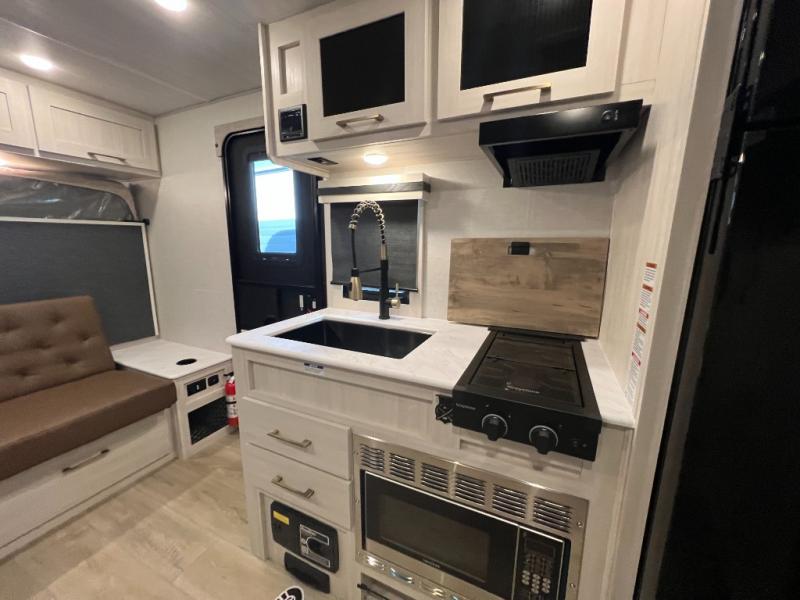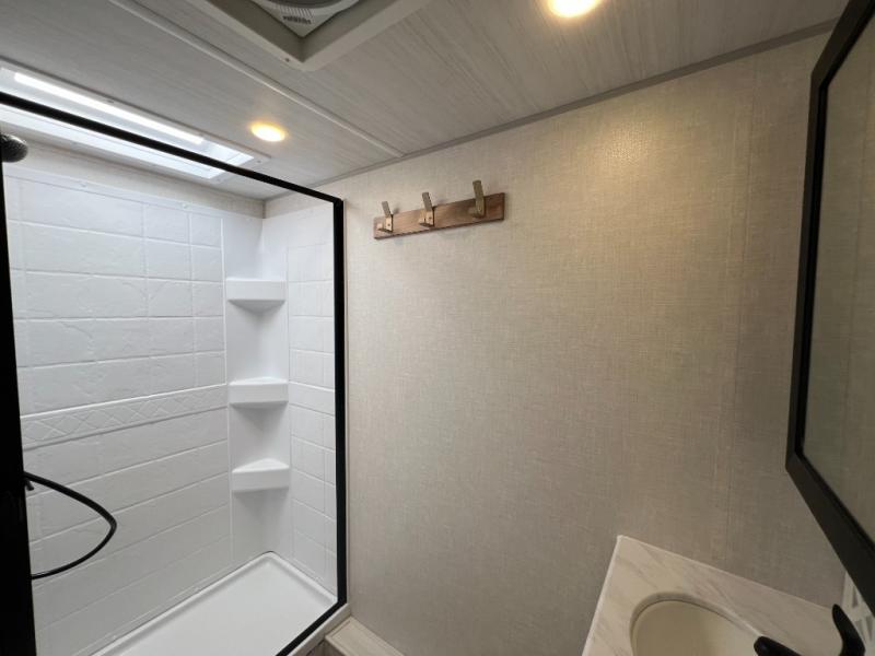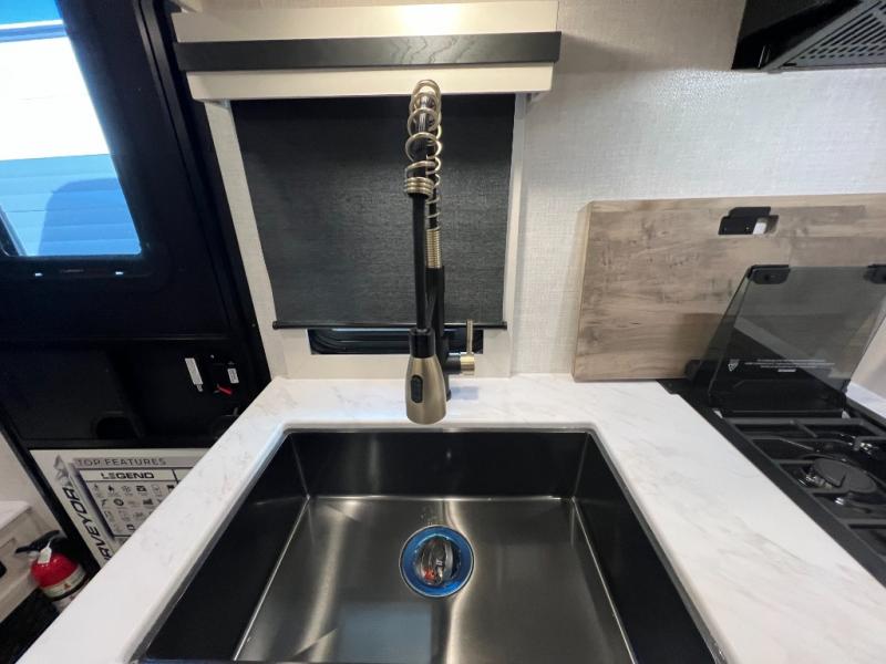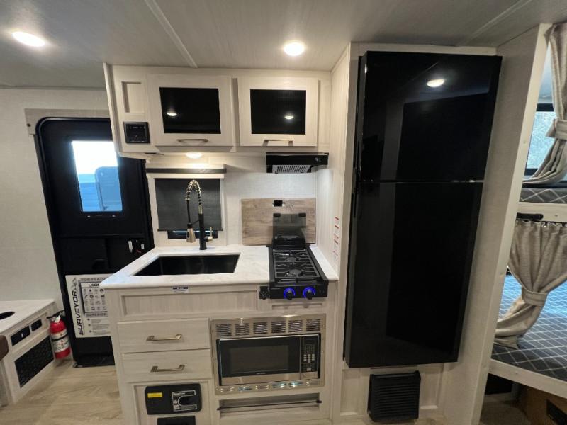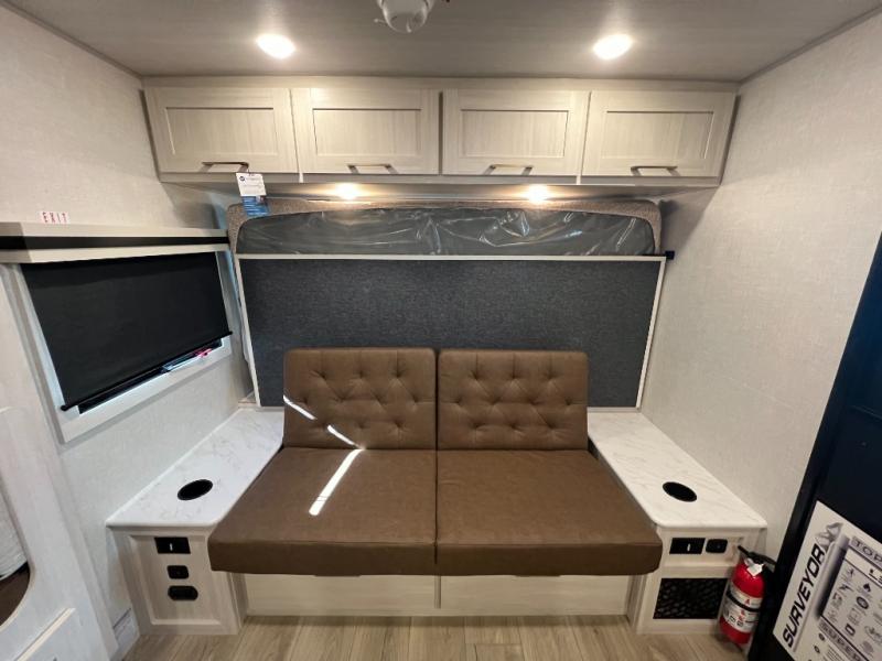 With any Surveyor Legend travel trailer by Forest River you will enjoy quality craftsmanship, convenient amenities, and at-home comforts. The Azdel composite walls provide a longer-lasting trailer, and the power tongue jack with a hitch light will get you back on the road in no-time. There are also Goodyear tires and a tire pressure monitoring system for hassle-free towing. Each model includes the Surveyor Legend Package that comes standard with oversized dinette storage access doors, front slam latch baggage doors, plus an automotive style tinted front windshield. You'll appreciate camping with a tankless water heater for endless hot showers, a 2" accessory hitch to bring bikes along, plus carpet-free interiors and a central vacuum system for easy clean up.