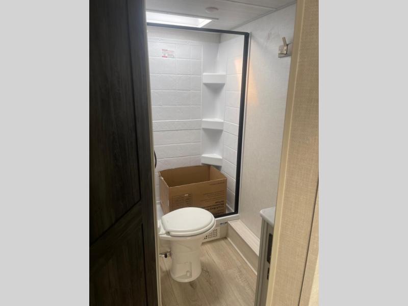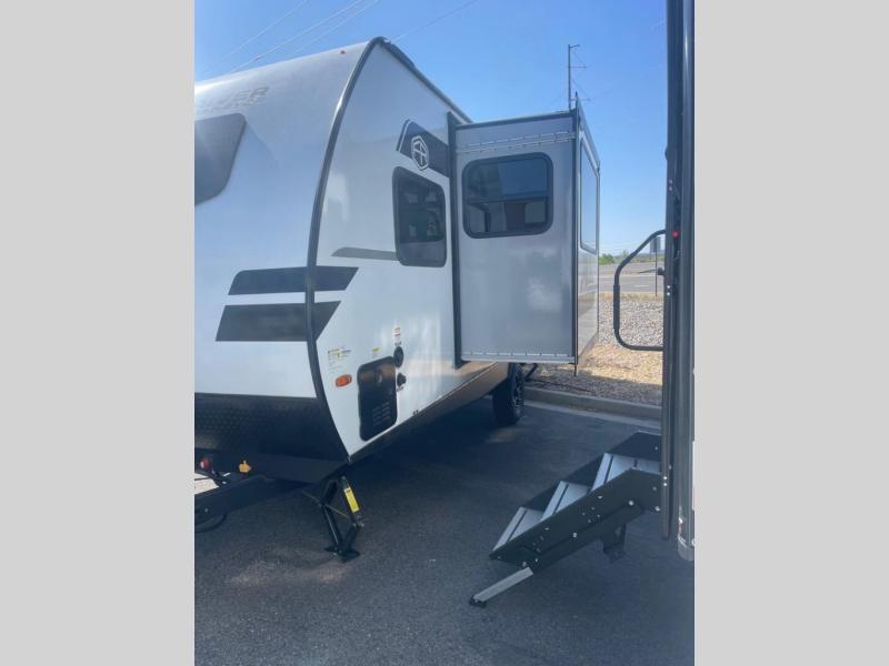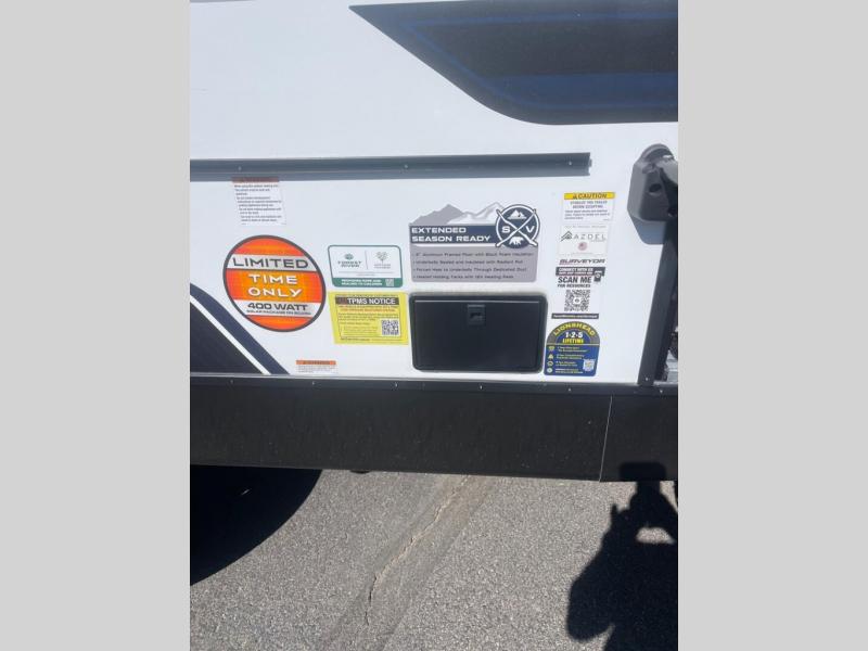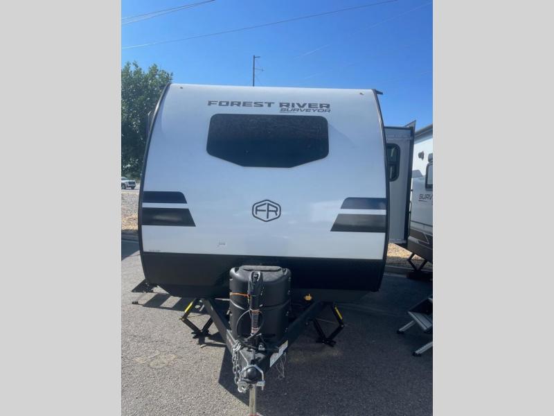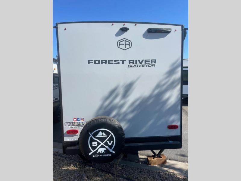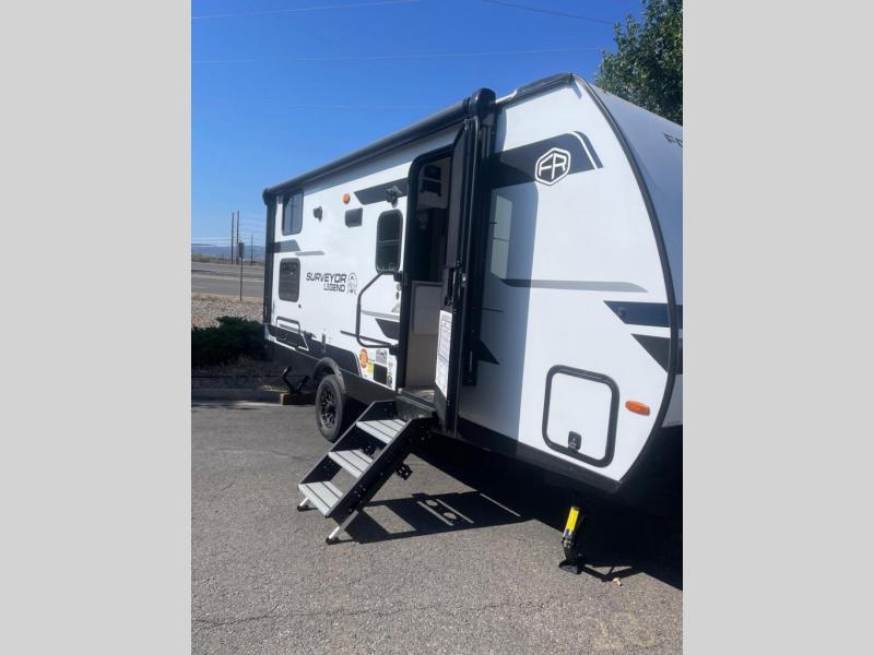 With any Surveyor Legend travel trailer by Forest River you will enjoy quality craftsmanship, convenient amenities, and at-home comforts. The Azdel composite walls provide a longer-lasting trailer, and the power tongue jack with a hitch light will get you back on the road in no-time. There are also Goodyear tires and a tire pressure monitoring system for hassle-free towing. Each model includes the Surveyor Legend Package that comes standard with oversized dinette storage access doors, front slam latch baggage doors, plus an automotive style tinted front windshield. You'll appreciate camping with a tankless water heater for endless hot showers, a 2" accessory hitch to bring bikes along, plus carpet-free interiors and a central vacuum system for easy clean up.