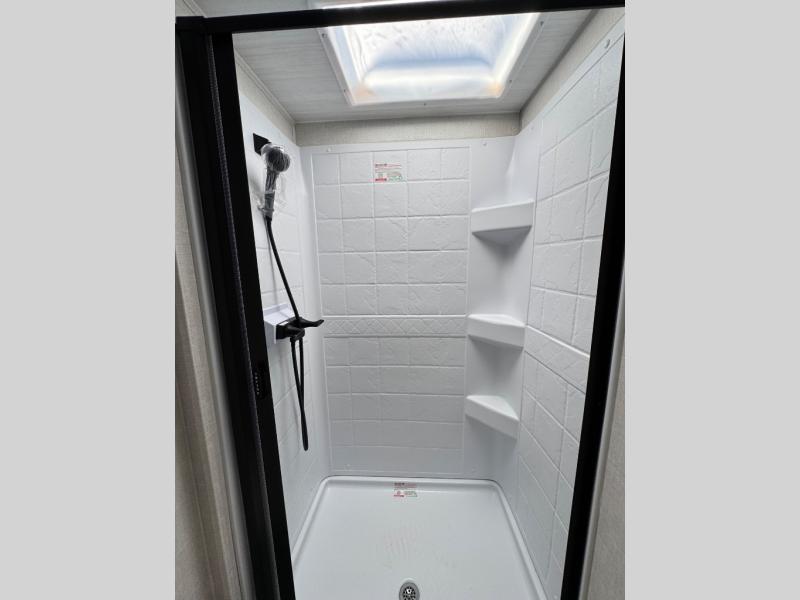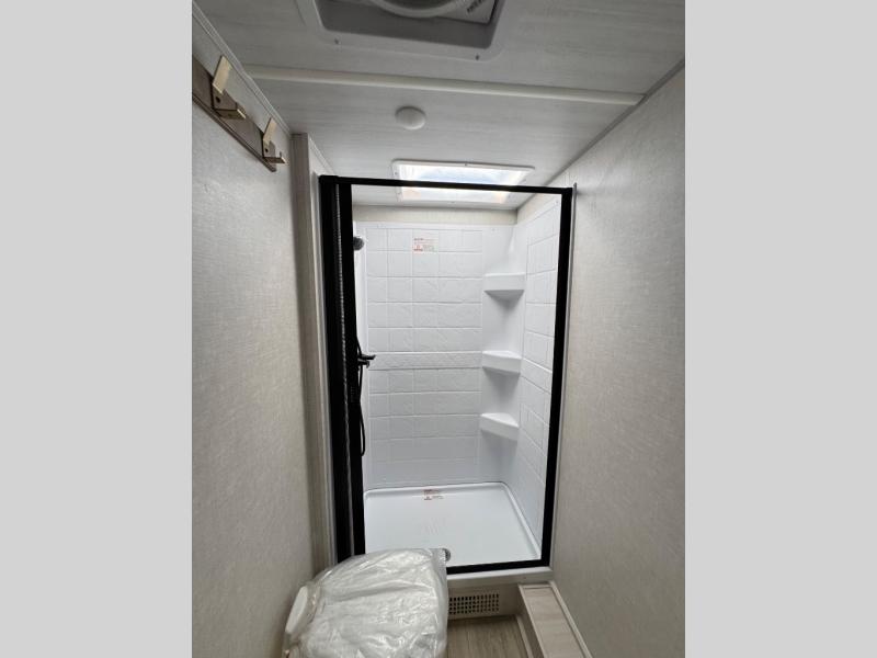With any Surveyor Legend travel trailer by Forest River you will enjoy quality craftsmanship, convenient amenities, and at-home comforts. The Azdel composite walls provide a longer-lasting trailer, and the power tongue jack with a hitch light will get you back on the road in no-time. There are also Goodyear tires and a tire pressure monitoring system for hassle-free towing. Each model includes the Surveyor Legend Package that comes standard with oversized dinette storage access doors, front slam latch baggage doors, plus an automotive style tinted front windshield. You'll appreciate camping with a tankless water heater for endless hot showers, a 2" accessory hitch to bring bikes along, plus carpet-free interiors and a central vacuum system for easy clean up.