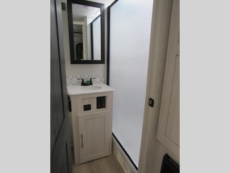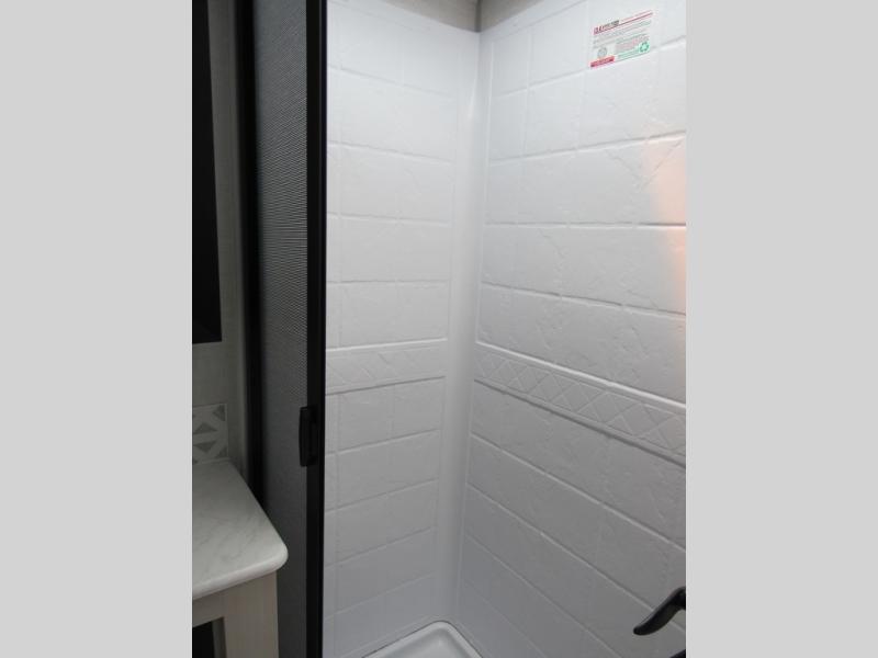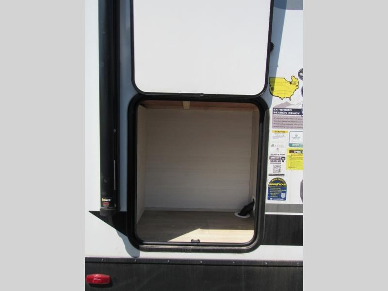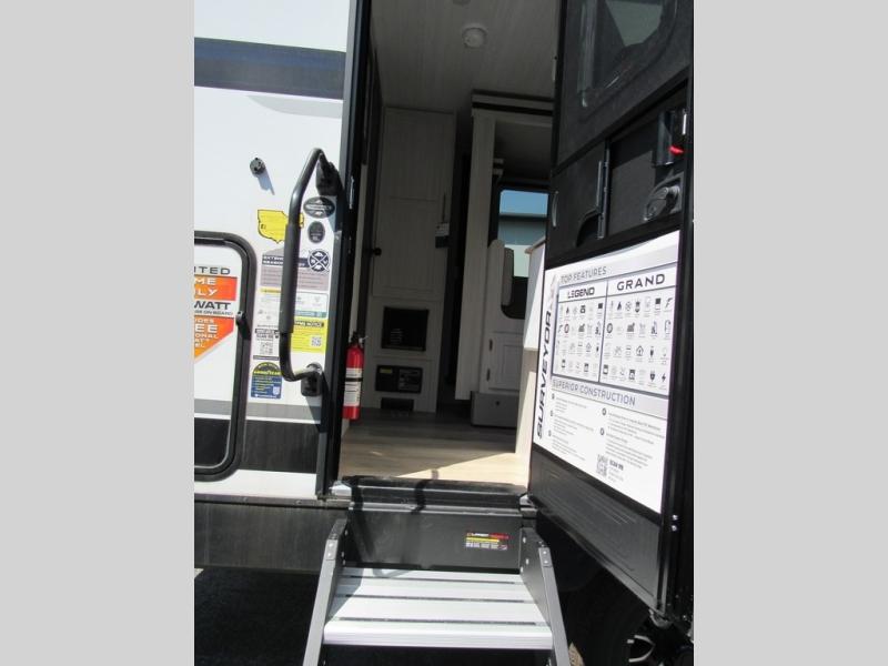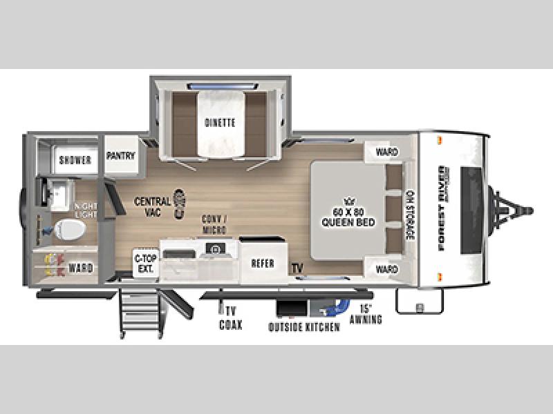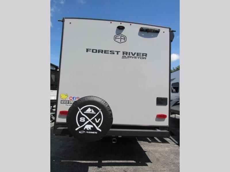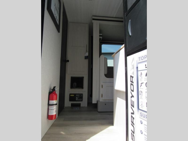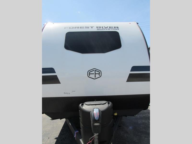 With any Surveyor Legend travel trailer by Forest River you will enjoy quality craftsmanship, convenient amenities, and at-home comforts. The Azdel composite walls provide a longer-lasting trailer, and the power tongue jack with a hitch light will get you back on the road in no-time. There are also Goodyear tires and a tire pressure monitoring system for hassle-free towing. Each model includes the Surveyor Legend Package that comes standard with oversized dinette storage access doors, front slam latch baggage doors, plus an automotive style tinted front windshield. You'll appreciate camping with a tankless water heater for endless hot showers, a 2" accessory hitch to bring bikes along, plus carpet-free interiors and a central vacuum system for easy clean up.