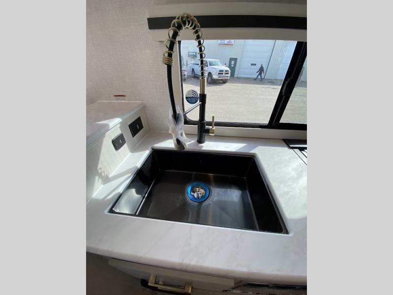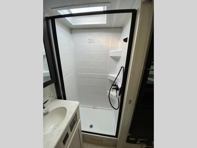 With any Surveyor Legend travel trailer by Forest River you will enjoy quality craftsmanship, convenient amenities, and at-home comforts. The Azdel composite walls provide a longer-lasting trailer, and the power tongue jack with a hitch light will get you back on the road in no-time. There are also Goodyear tires and a tire pressure monitoring system for hassle-free towing. Each model includes the Surveyor Legend Package that comes standard with oversized dinette storage access doors, front slam latch baggage doors, plus an automotive style tinted front windshield. You'll appreciate camping with a tankless water heater for endless hot showers, a 2" accessory hitch to bring bikes along, plus carpet-free interiors and a central vacuum system for easy clean up.