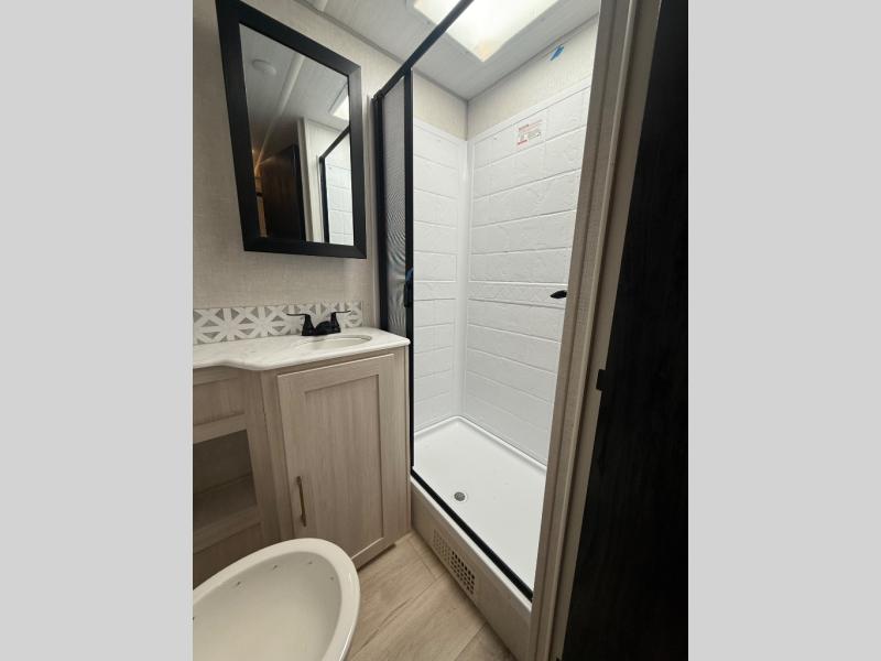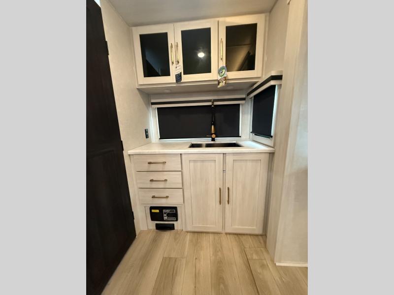 With any Surveyor Legend travel trailer by Forest River you will enjoy quality craftsmanship, convenient amenities, and at-home comforts. The Azdel composite walls provide a longer-lasting trailer, and the power tongue jack with a hitch light will get you back on the road in no-time. There are also Goodyear tires and a tire pressure monitoring system for hassle-free towing. Each model includes the Surveyor Legend Package that comes standard with oversized dinette storage access doors, front slam latch baggage doors, plus an automotive style tinted front windshield. You'll appreciate camping with a tankless water heater for endless hot showers, a 2" accessory hitch to bring bikes along, plus carpet-free interiors and a central vacuum system for easy clean up.