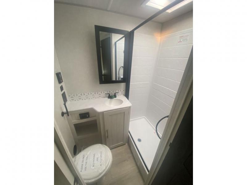 With any Surveyor Legend travel trailer by Forest River you will enjoy quality craftsmanship, convenient amenities, and at-home comforts. The Azdel composite walls provide a longer-lasting trailer, and the power tongue jack with a hitch light will get you back on the road in no-time. There are also Goodyear tires and a tire pressure monitoring system for hassle-free towing. Each model includes the Surveyor Legend Package that comes standard with oversized dinette storage access doors, front slam latch baggage doors, plus an automotive style tinted front windshield. You'll appreciate camping with a tankless water heater for endless hot showers, a 2" accessory hitch to bring bikes along, plus carpet-free interiors and a central vacuum system for easy clean up.