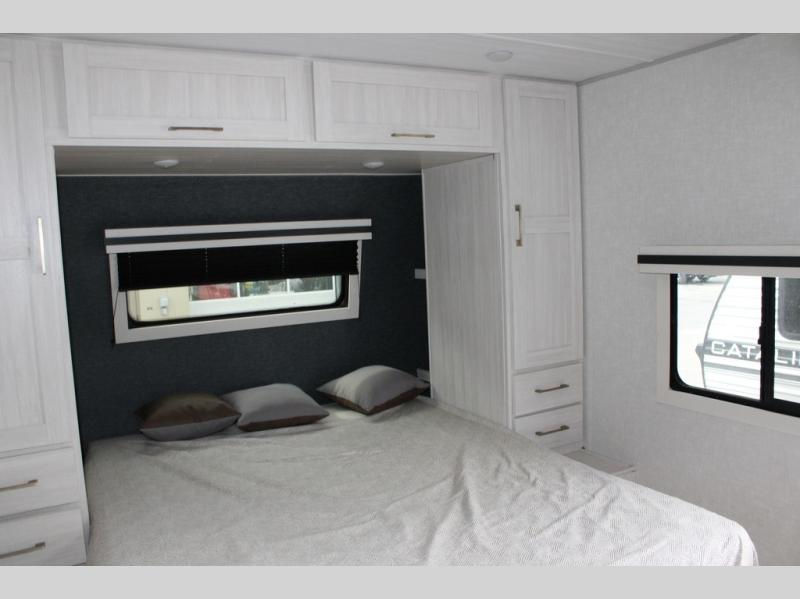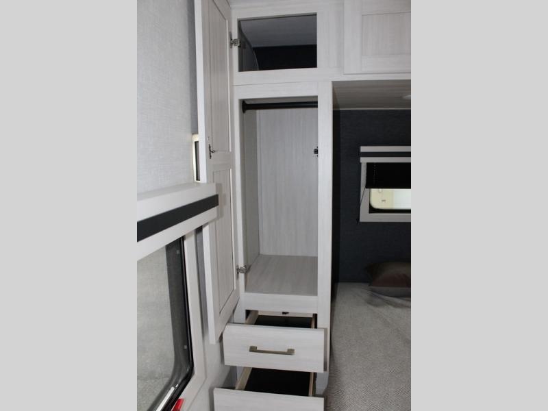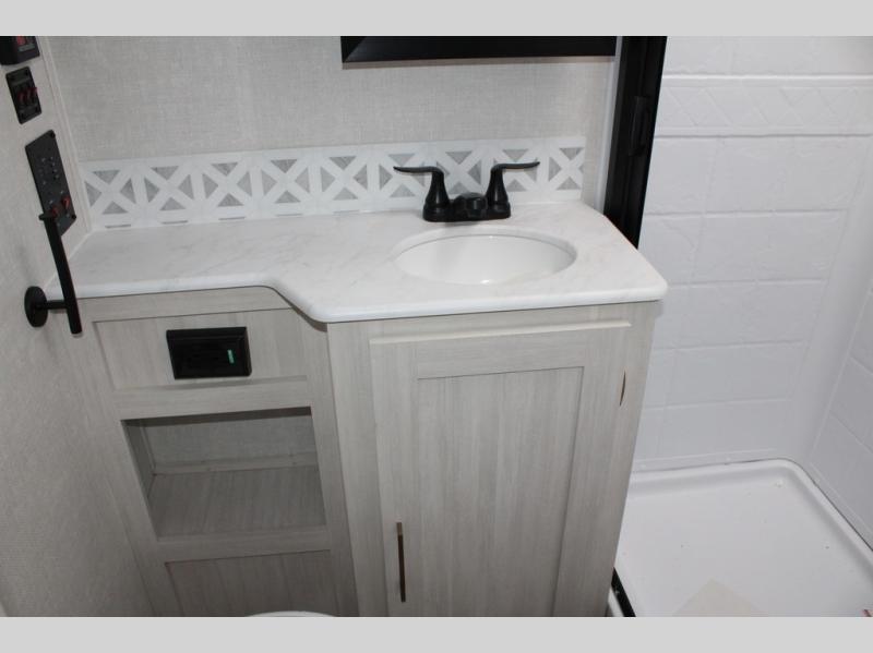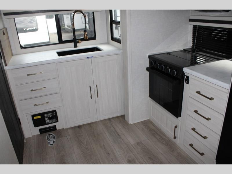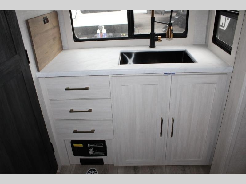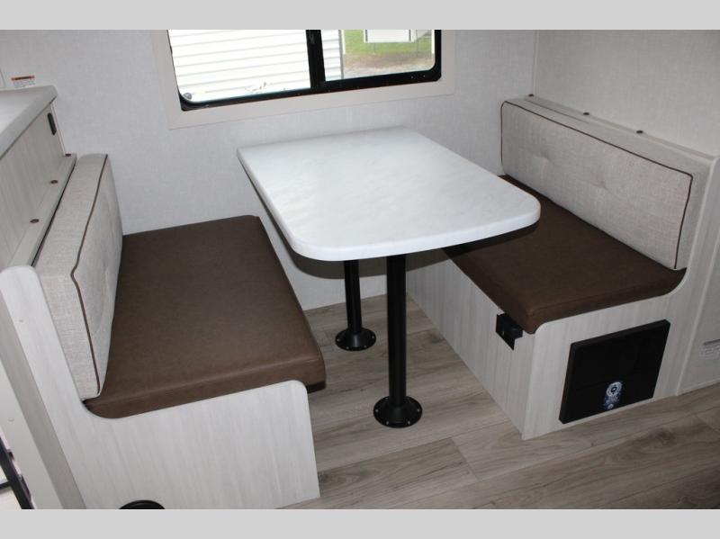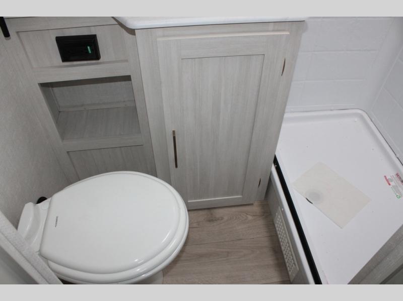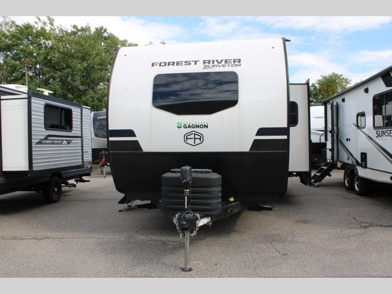 With any Surveyor Legend travel trailer by Forest River you will enjoy quality craftsmanship, convenient amenities, and at-home comforts. The Azdel composite walls provide a longer-lasting trailer, and the power tongue jack with a hitch light will get you back on the road in no-time. There are also Goodyear tires and a tire pressure monitoring system for hassle-free towing. Each model includes the Surveyor Legend Package that comes standard with oversized dinette storage access doors, front slam latch baggage doors, plus an automotive style tinted front windshield. You'll appreciate camping with a tankless water heater for endless hot showers, a 2" accessory hitch to bring bikes along, plus carpet-free interiors and a central vacuum system for easy clean up.