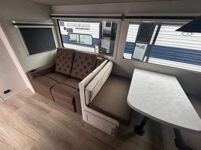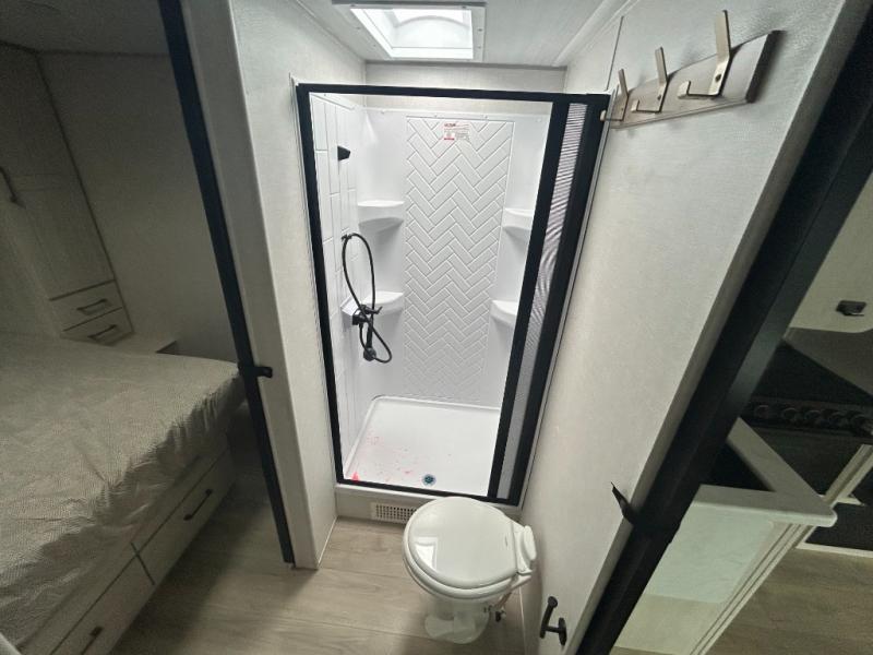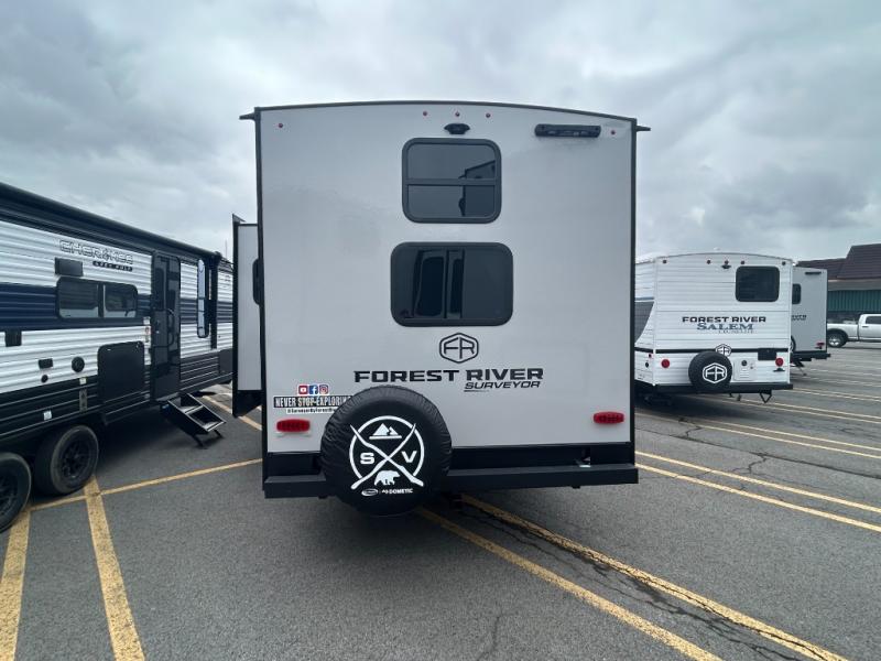 With any Surveyor Legend travel trailer by Forest River you will enjoy quality craftsmanship, convenient amenities, and at-home comforts. The Azdel composite walls provide a longer-lasting trailer, and the power tongue jack with a hitch light will get you back on the road in no-time. There are also Goodyear tires and a tire pressure monitoring system for hassle-free towing. Each model includes the Surveyor Legend Package that comes standard with oversized dinette storage access doors, front slam latch baggage doors, plus an automotive style tinted front windshield. You'll appreciate camping with a tankless water heater for endless hot showers, a 2" accessory hitch to bring bikes along, plus carpet-free interiors and a central vacuum system for easy clean up.