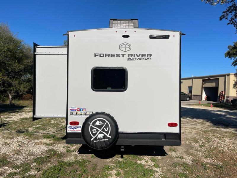 With any Surveyor Legend travel trailer by Forest River you will enjoy quality craftsmanship, convenient amenities, and at-home comforts. The Azdel composite walls provide a longer-lasting trailer, and the power tongue jack with a hitch light will get you back on the road in no-time. There are also Goodyear tires and a tire pressure monitoring system for hassle-free towing. Each model includes the Surveyor Legend Package that comes standard with oversized dinette storage access doors, front slam latch baggage doors, plus an automotive style tinted front windshield. You'll appreciate camping with a tankless water heater for endless hot showers, a 2" accessory hitch to bring bikes along, plus carpet-free interiors and a central vacuum system for easy clean up.