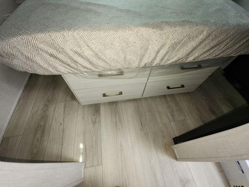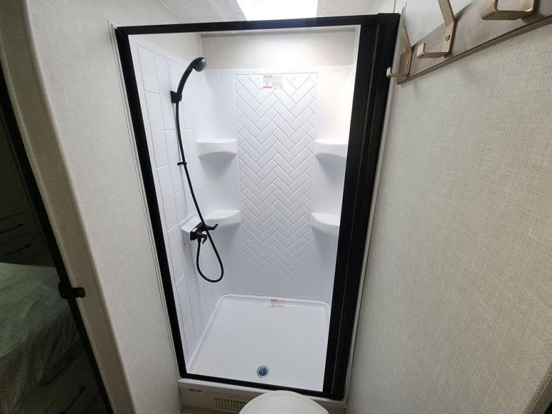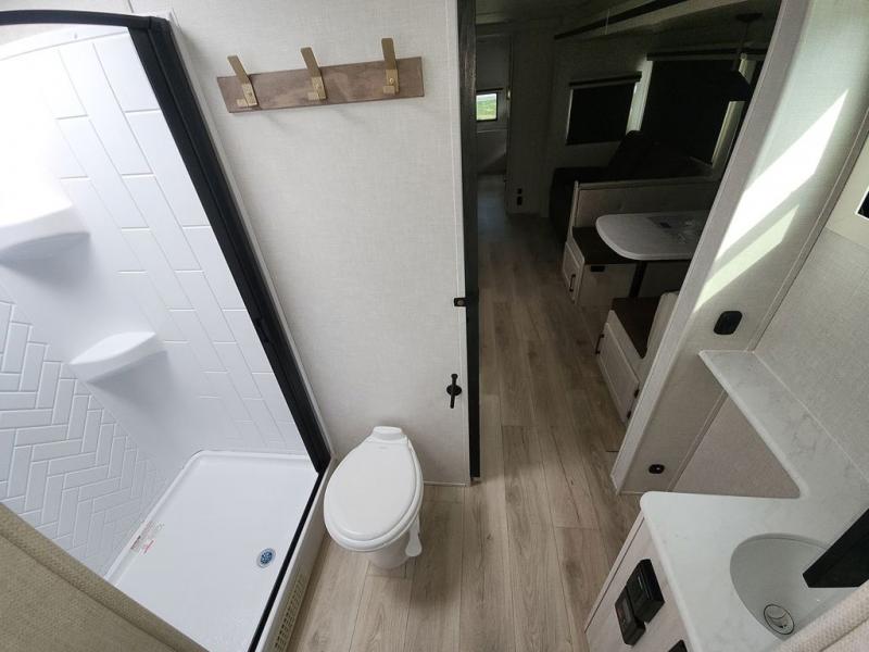 With any Surveyor Legend travel trailer by Forest River you will enjoy quality craftsmanship, convenient amenities, and at-home comforts. The Azdel composite walls provide a longer-lasting trailer, and the power tongue jack with a hitch light will get you back on the road in no-time. There are also Goodyear tires and a tire pressure monitoring system for hassle-free towing. Each model includes the Surveyor Legend Package that comes standard with oversized dinette storage access doors, front slam latch baggage doors, plus an automotive style tinted front windshield. You'll appreciate camping with a tankless water heater for endless hot showers, a 2" accessory hitch to bring bikes along, plus carpet-free interiors and a central vacuum system for easy clean up.