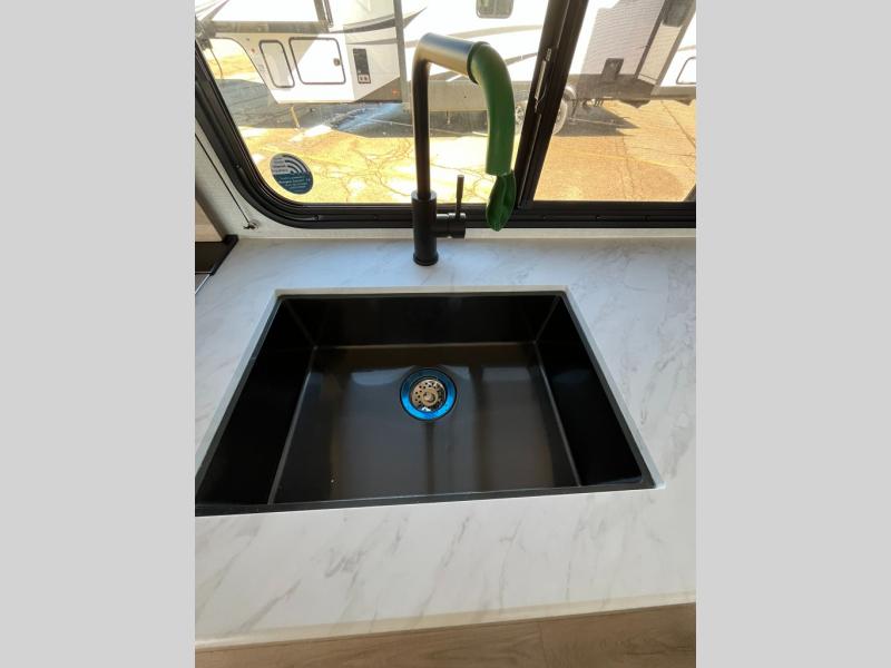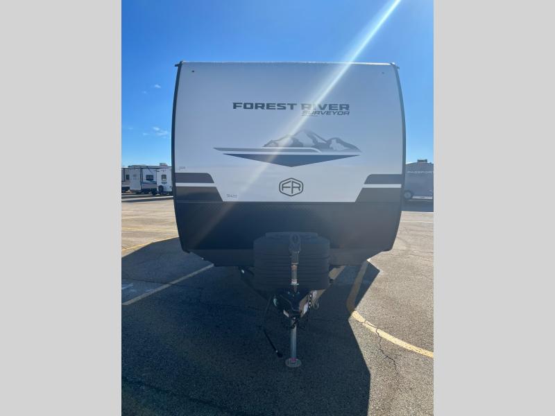 Value and versatility go hand-in-hand with the Surveyor Legend X travel trailers by Forest River. The solid construction includes a 2" aluminum framed floor with block foam insulation and a sealed underbelly with forced heat and radiant foil insulation. A 100-watt roof mounted solar panel will provide some off-grid power, and the power tongue jack will let you easily hitch up and go whenever you're ready. Additional stand-out features include Surf(X) seamless countertops throughout, two A/C units, an electric awning with LED light strip, black glass friction hinge entry door(s), and so much more!