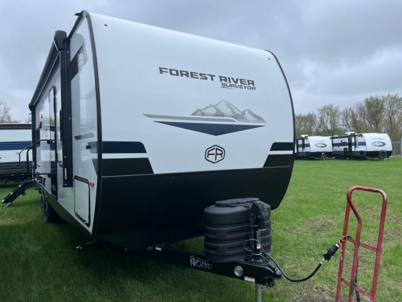 Value and versatility go hand-in-hand with the Surveyor Legend X travel trailers by Forest River. The solid construction includes a 2" aluminum framed floor with block foam insulation and a sealed underbelly with forced heat and radiant foil insulation. A 100-watt roof mounted solar panel will provide some off-grid power, and the power tongue jack will let you easily hitch up and go whenever you're ready. Additional stand-out features include Surf(X) seamless countertops throughout, two A/C units, an electric awning with LED light strip, black glass friction hinge entry door(s), and so much more!