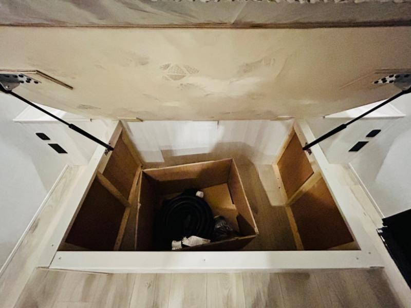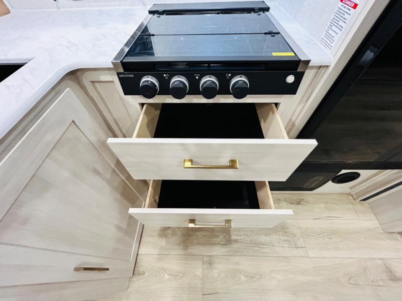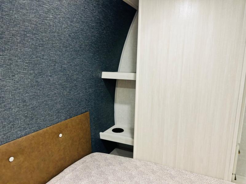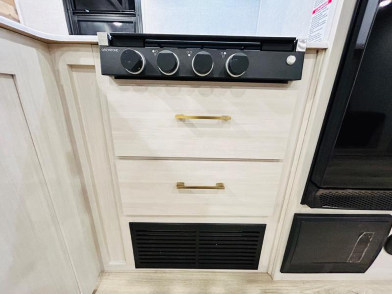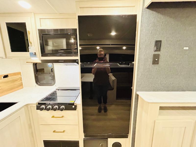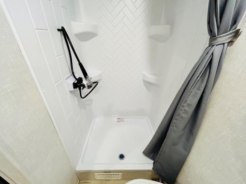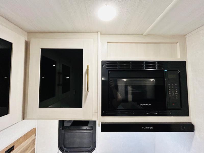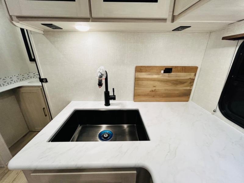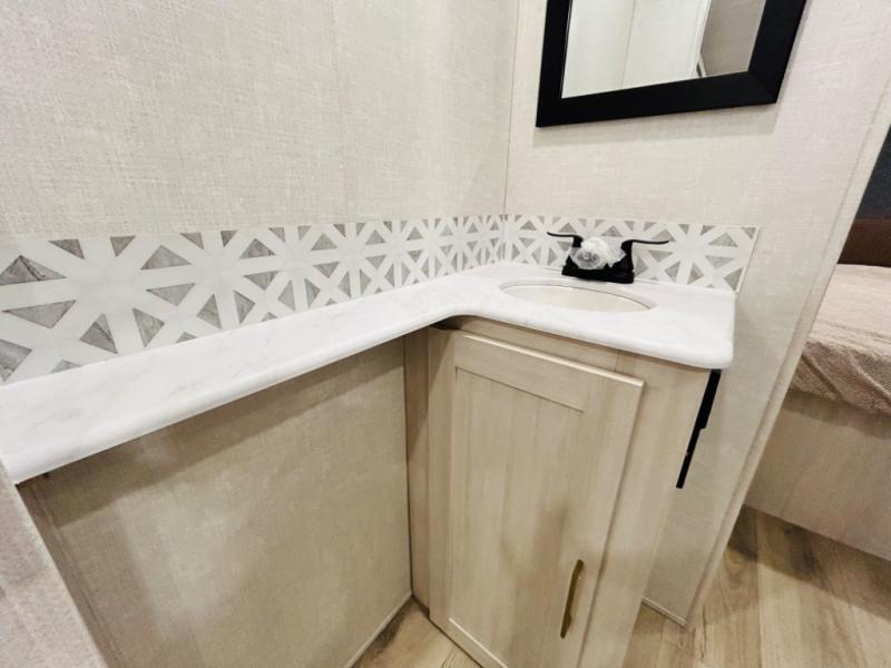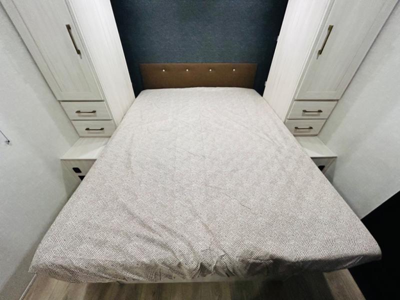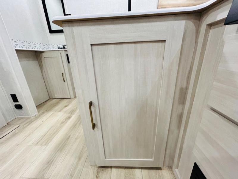 Head to your favorite camping spot with your favorite people in this spacious, dual entry travel trailer! The large slide out houses the booth dinette and sofa where you can relax in the evenings and even let guests sleep over who haven't claimed the quad bunks in the rear bunkhouse. A walk-thru bath is convenient for all, and the full kitchen lets you whip up your best meals in the microwave with an air fryer. And a walk-in pantry with washer and dryer prep makes it easier to go full-time if you choose! When it's time to call it a night, the front master bedroom with a queen bed will provide you with your own space to retreat to, and there are dual bedside wardrobes to keep your clothes organized.