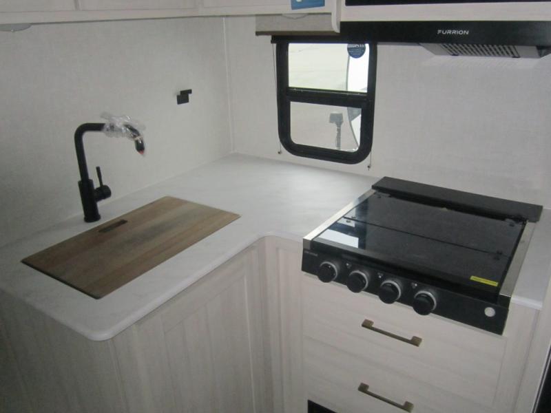 Value and versatility go hand-in-hand with the Surveyor Legend X travel trailers by Forest River. The solid construction includes a 2" aluminum framed floor with block foam insulation and a sealed underbelly with forced heat and radiant foil insulation. A 100-watt roof mounted solar panel will provide some off-grid power, and the power tongue jack will let you easily hitch up and go whenever you're ready. Additional stand-out features include Surf(X) seamless countertops throughout, two A/C units, an electric awning with LED light strip, black glass friction hinge entry door(s), and so much more!