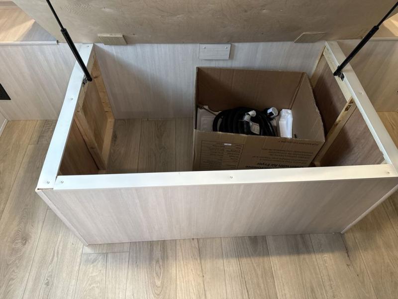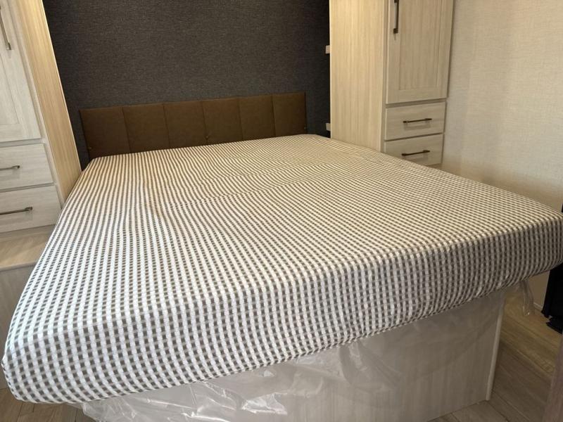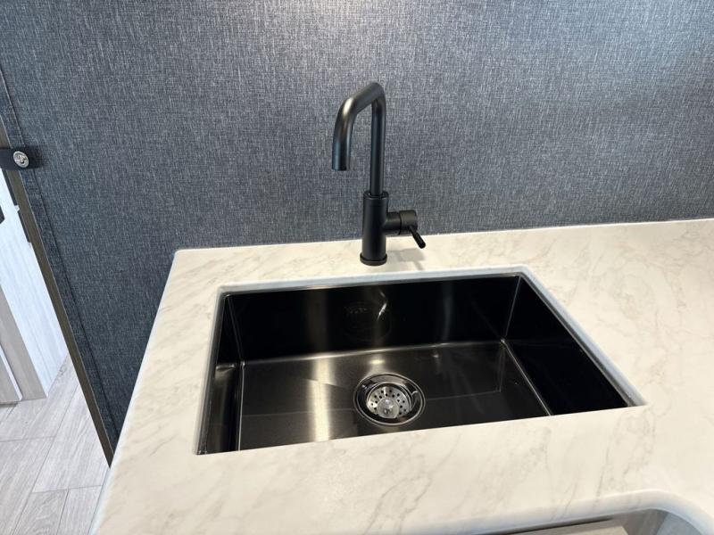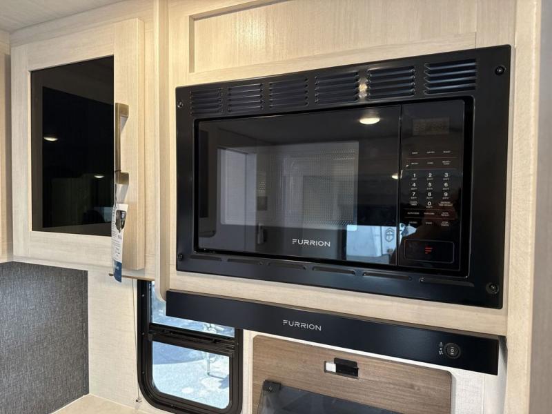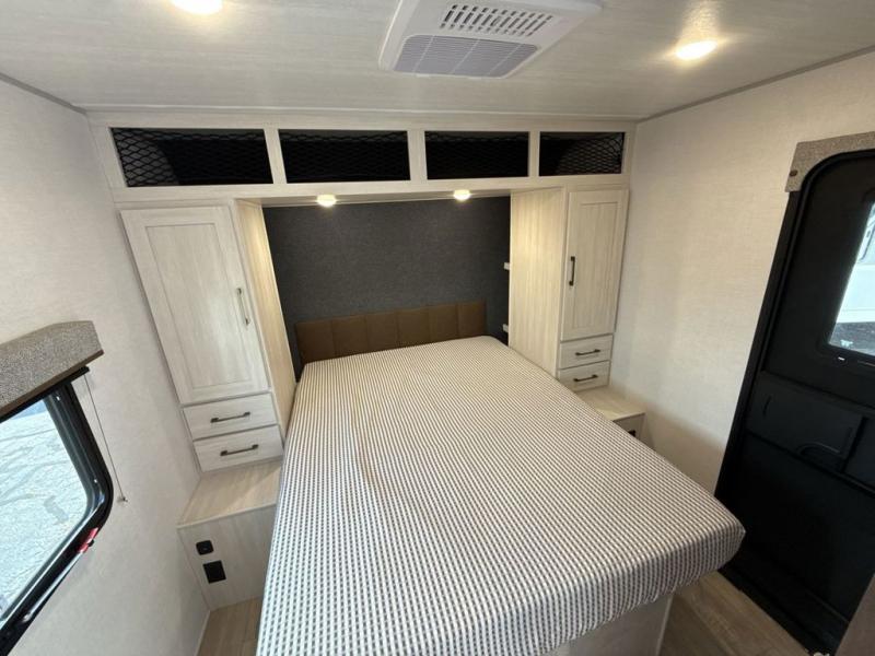 Head to your favorite camping spot with your favorite people in this spacious, dual entry travel trailer! The large slide out houses the booth dinette and sofa where you can relax in the evenings and even let guests sleep over who haven't claimed the quad bunks in the rear bunkhouse. A walk-thru bath is convenient for all, and the full kitchen lets you whip up your best meals in the microwave with an air fryer. And a walk-in pantry with washer and dryer prep makes it easier to go full-time if you choose! When it's time to call it a night, the front master bedroom with a queen bed will provide you with your own space to retreat to, and there are dual bedside wardrobes to keep your clothes organized.