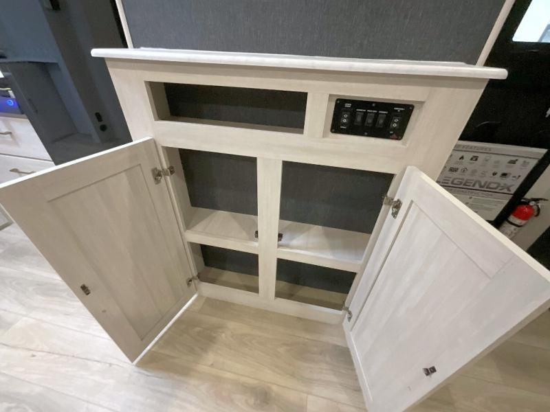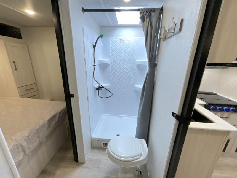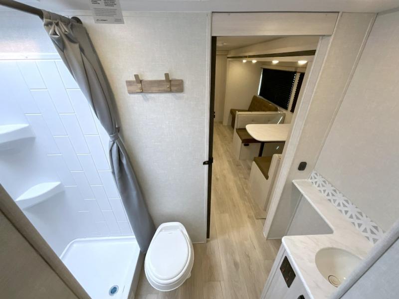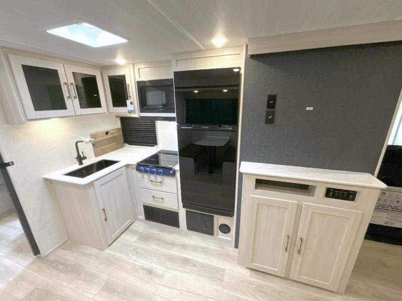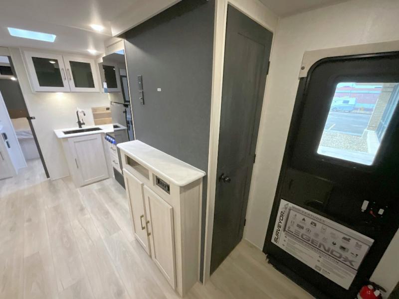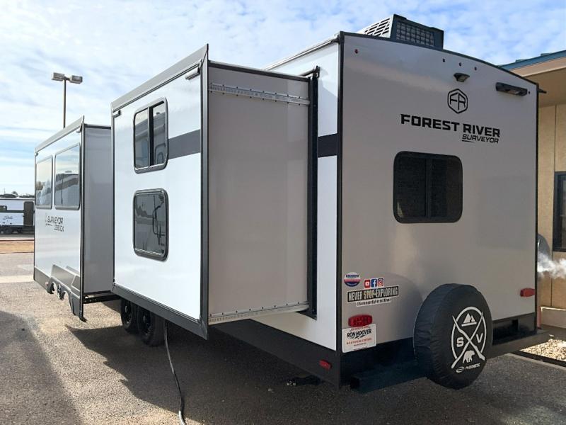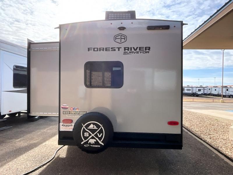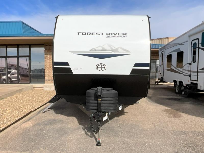 Value and versatility go hand-in-hand with the Surveyor Legend X travel trailers by Forest River. The solid construction includes a 2" aluminum framed floor with block foam insulation and a sealed underbelly with forced heat and radiant foil insulation. A 100-watt roof mounted solar panel will provide some off-grid power, and the power tongue jack will let you easily hitch up and go whenever you're ready. Additional stand-out features include Surf(X) seamless countertops throughout, two A/C units, an electric awning with LED light strip, black glass friction hinge entry door(s), and so much more!