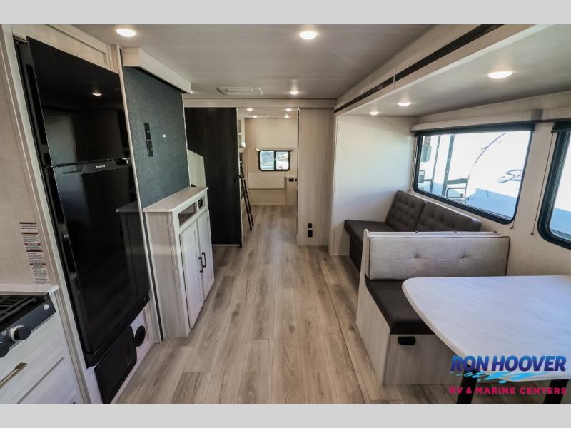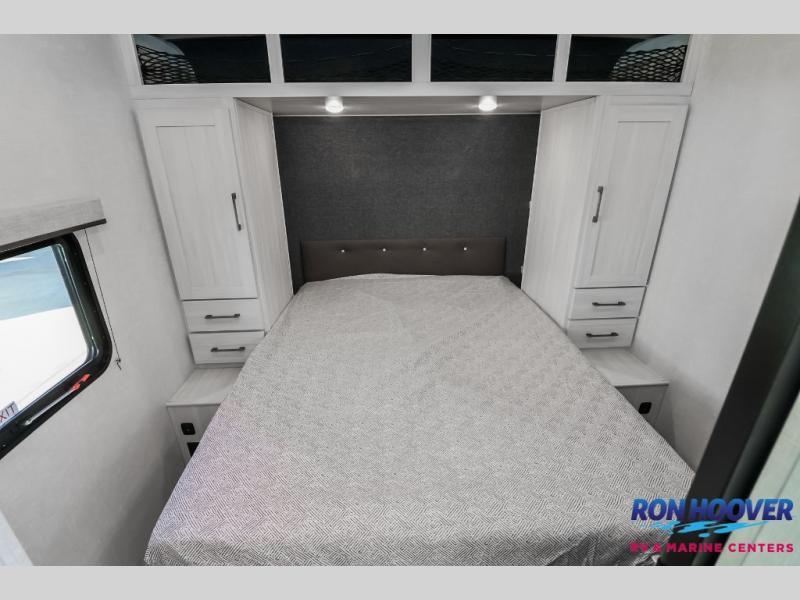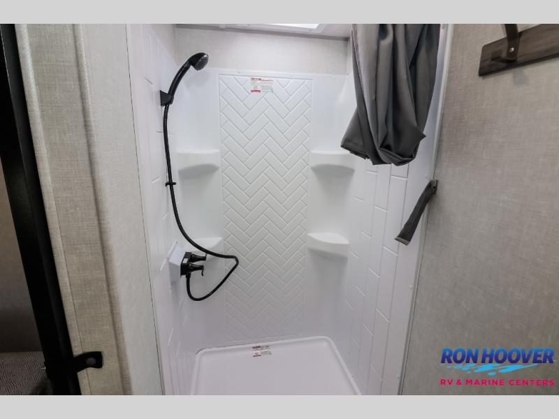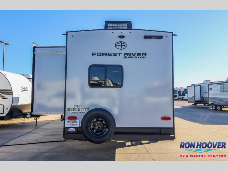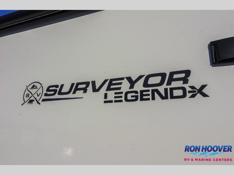 Value and versatility go hand-in-hand with the Surveyor Legend X travel trailers by Forest River. The solid construction includes a 2" aluminum framed floor with block foam insulation and a sealed underbelly with forced heat and radiant foil insulation. A 100-watt roof mounted solar panel will provide some off-grid power, and the power tongue jack will let you easily hitch up and go whenever you're ready. Additional stand-out features include Surf(X) seamless countertops throughout, two A/C units, an electric awning with LED light strip, black glass friction hinge entry door(s), and so much more!