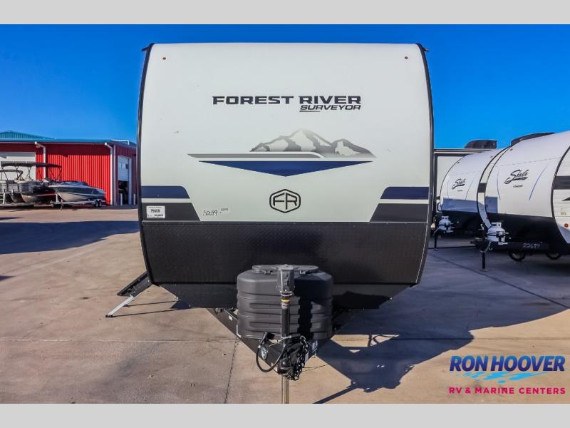Value and versatility go hand-in-hand with the Surveyor Legend X travel trailers by Forest River. The solid construction includes a 2" aluminum framed floor with block foam insulation and a sealed underbelly with forced heat and radiant foil insulation. A 100-watt roof mounted solar panel will provide some off-grid power, and the power tongue jack will let you easily hitch up and go whenever you're ready. Additional stand-out features include Surf(X) seamless countertops throughout, two A/C units, an electric awning with LED light strip, black glass friction hinge entry door(s), and so much more!