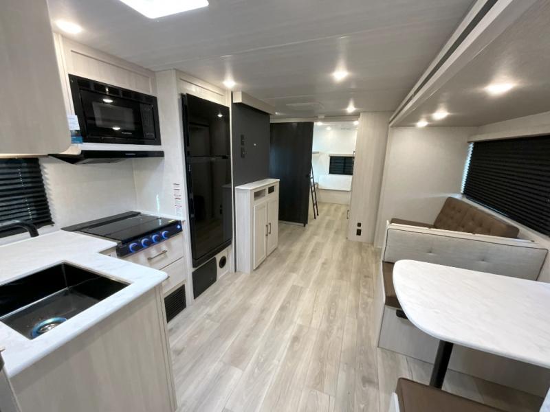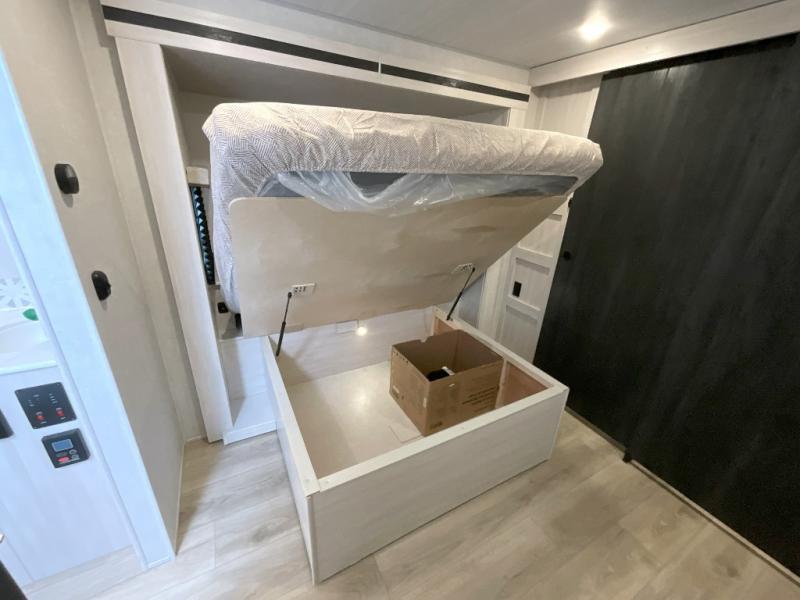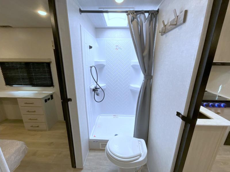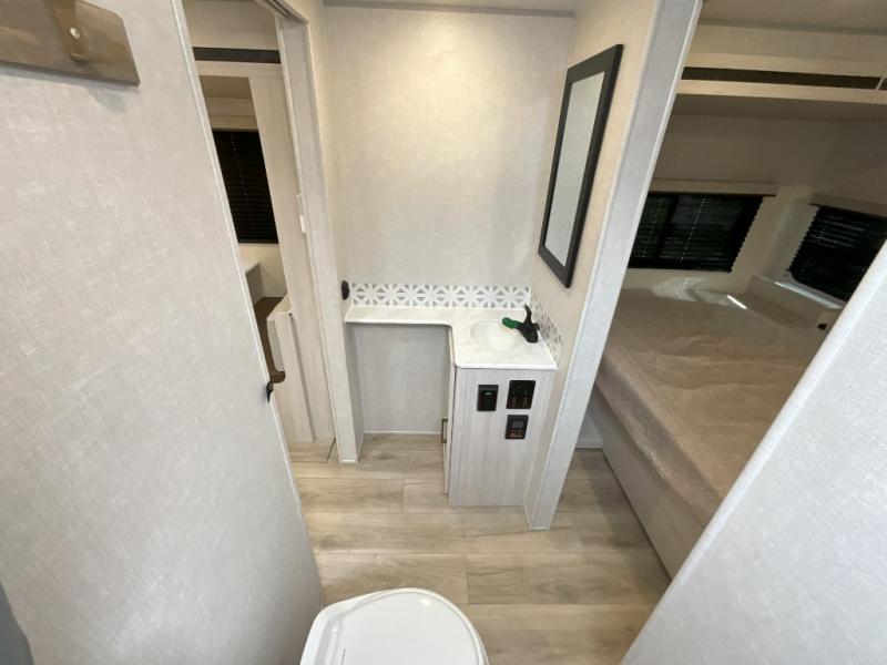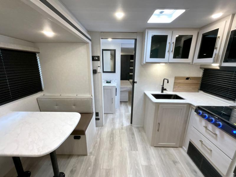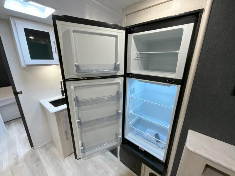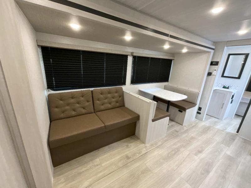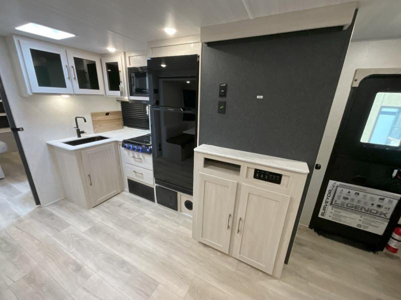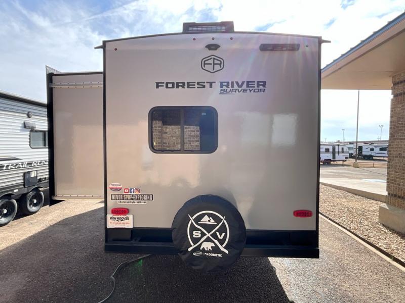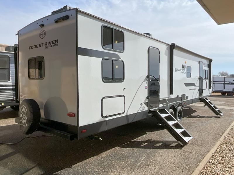 Value and versatility go hand-in-hand with the Surveyor Legend X travel trailers by Forest River. The solid construction includes a 2" aluminum framed floor with block foam insulation and a sealed underbelly with forced heat and radiant foil insulation. A 100-watt roof mounted solar panel will provide some off-grid power, and the power tongue jack will let you easily hitch up and go whenever you're ready. Additional stand-out features include Surf(X) seamless countertops throughout, two A/C units, an electric awning with LED light strip, black glass friction hinge entry door(s), and so much more!