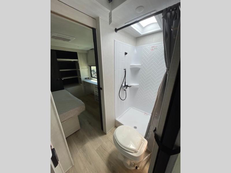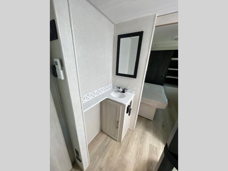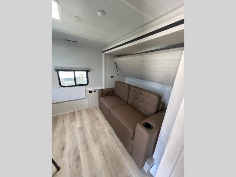 Value and versatility go hand-in-hand with the Surveyor Legend X travel trailers by Forest River. The solid construction includes a 2" aluminum framed floor with block foam insulation and a sealed underbelly with forced heat and radiant foil insulation. A 100-watt roof mounted solar panel will provide some off-grid power, and the power tongue jack will let you easily hitch up and go whenever you're ready. Additional stand-out features include Surf(X) seamless countertops throughout, two A/C units, an electric awning with LED light strip, black glass friction hinge entry door(s), and so much more!