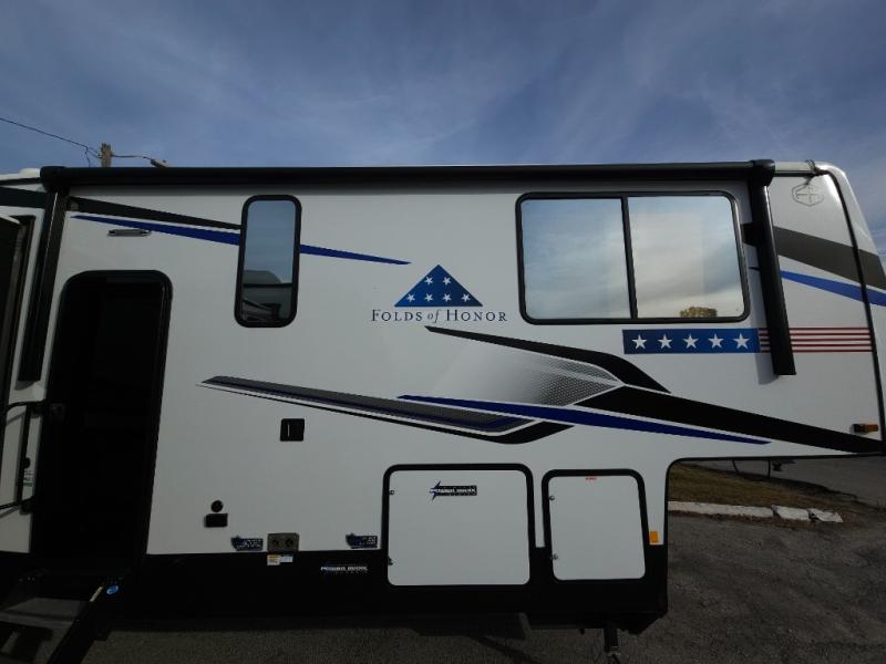 Everyone will stay clean with a bath and a wet bath in the garage in this fifth wheel toy hauler! The front private bedroom has a 72" x 80" king bed slide to lay your head on at night, a front wall wardrobe, a dresser to keep your clothes looking nice, plus an entrance into the bathroom. The kitchen has a counter peninsula to prepare your meals, and a 16 cu. ft. 12V black glass residential-style refrigerator to store any leftovers. The garage area has a loft, opposing flip-up sofas with a table in between and a raised queen bed above them, as well as a second entry door and an area prepped to add an optional washer and dryer!