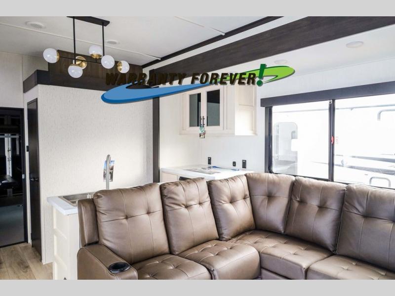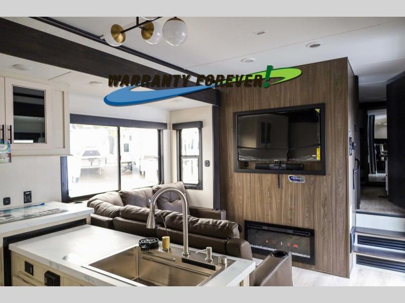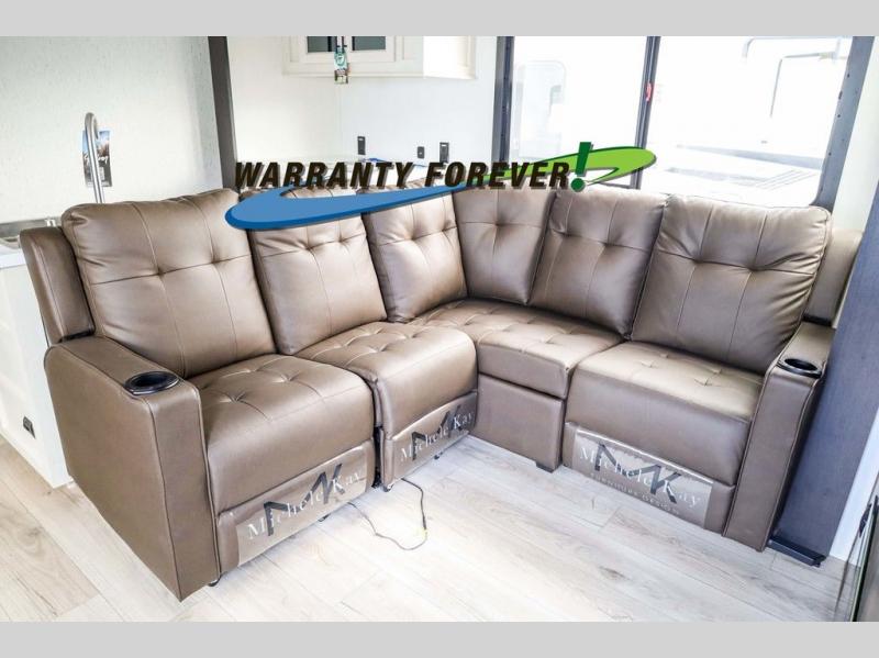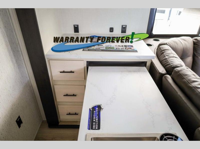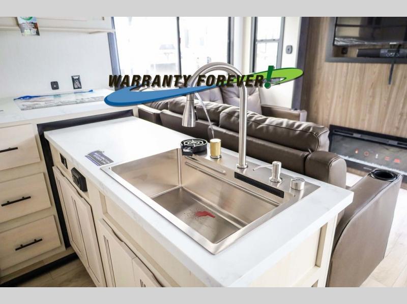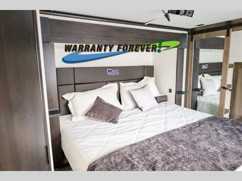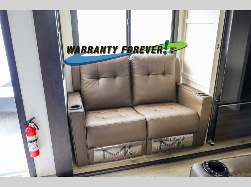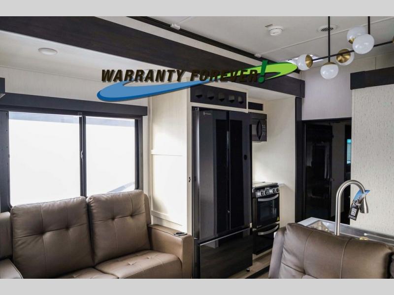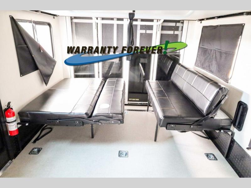 Every one of these Forest River Vengeance Rogue Armored fifth wheel toy haulers come with the features you want most at an affordable price tag! The DuraPoxy gas/oil resistant floor has 5,000 lb. tie downs to ensure your toys will arrive safely without damaging the flooring, plus the 3,000 lb. rated ramp door makes it easy to load them. Two 15,000 BTU A/Cs are "Super H Ducted" to keep you cool even on the hottest summer days, and an Armored underbelly helps keep your unit's vitals protected. The Rogue Ready package comes with a six point leveling system, a power MAXX storage system, a TST tire pressure monitoring system, and many more stand-out features. And don't overlook the Rogue Premium Package with an 8' weatherproof ramp door, an exterior TV hookup for the option to add a television, blue accent wheels, and solar reflective safety glass windows to name a few conveniences.