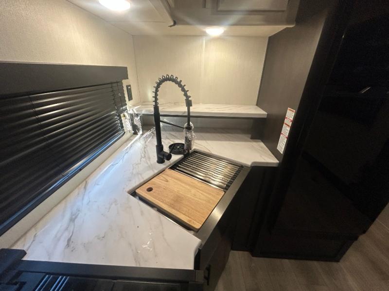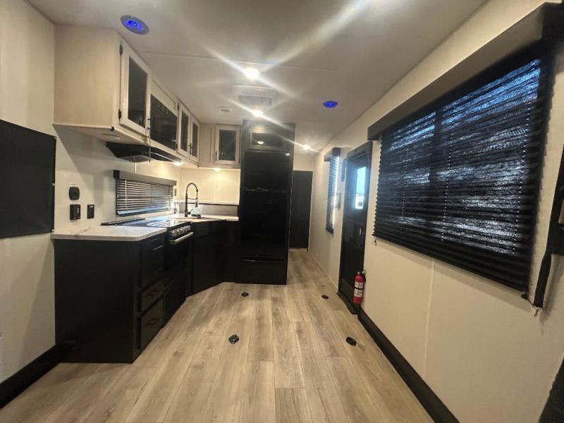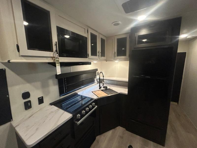 With any Vengeance Rouge SUT toy hauler travel trailer or fifth wheel by Forest River you can bring along your favorite ride-on toys, while still enjoying at-home comforts. Each one is built with a seamless roofing membrane with heat reflectivity and an armored underbelly tank enclosure for added strength and durability, and the 8' 6" wide body construction means you can bring along your favorite ride-on toys. Inside, you'll find a 1000 watt microwave and a three burner cooktop with an oven, seamless countertops, plus zebra shades that filters light and are blackout capable. These toy haulers also include 12V heat pads on all the holding tanks, a 15,000 BTU A/C unit, and many more amenities to make camping easier than ever.