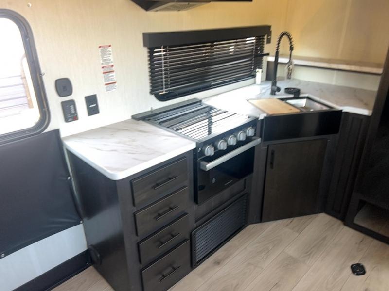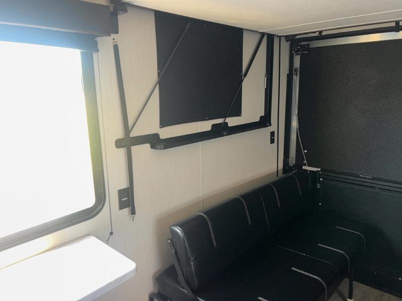 With any Vengeance Rouge SUT toy hauler travel trailer or fifth wheel by Forest River you can bring along your favorite ride-on toys, while still enjoying at-home comforts. Each one is built with a seamless roofing membrane with heat reflectivity and an armored underbelly tank enclosure for added strength and durability, and the 8' 6" wide body construction means you can bring along your favorite ride-on toys. Inside, you'll find a 1000 watt microwave and a three burner cooktop with an oven, seamless countertops, plus zebra shades that filters light and are blackout capable. These toy haulers also include 12V heat pads on all the holding tanks, a 15,000 BTU A/C unit, and many more amenities to make camping easier than ever.