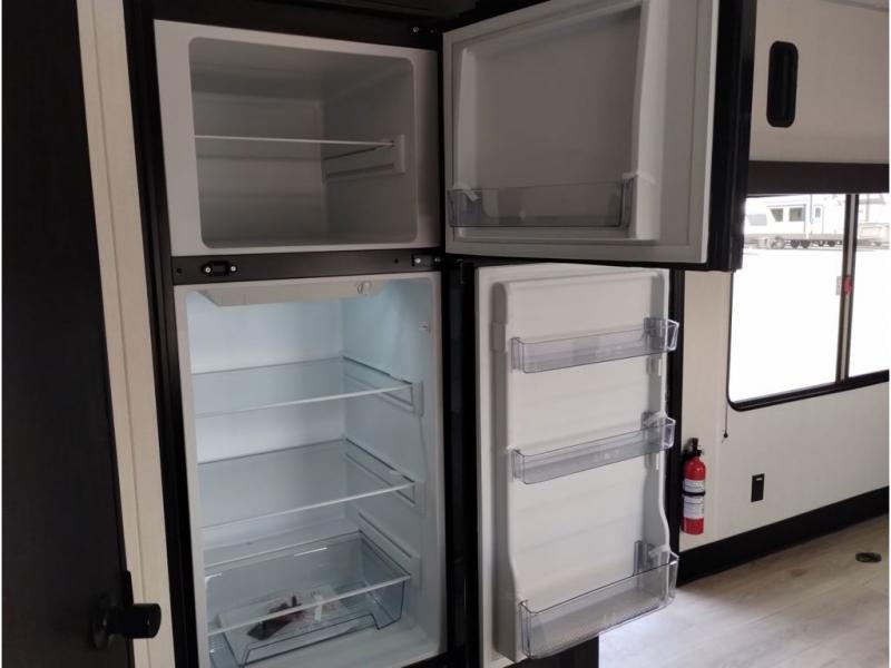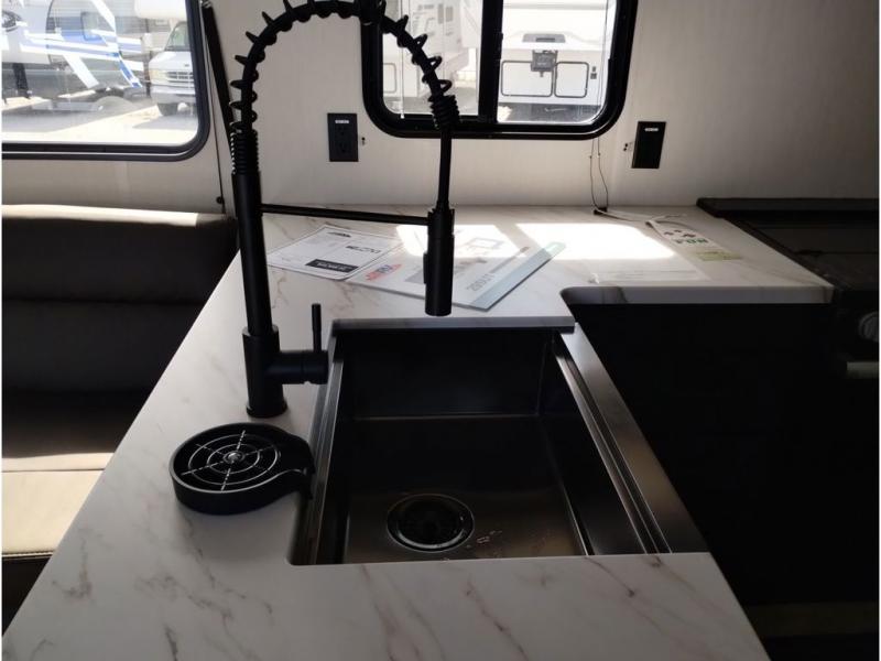 With any Vengeance Rouge SUT toy hauler travel trailer or fifth wheel by Forest River you can bring along your favorite ride-on toys, while still enjoying at-home comforts. Each one is built with a seamless roofing membrane with heat reflectivity and an armored underbelly tank enclosure for added strength and durability, and the 8' 6" wide body construction means you can bring along your favorite ride-on toys. Inside, you'll find a 1000 watt microwave and a three burner cooktop with an oven, seamless countertops, plus zebra shades that filters light and are blackout capable. These toy haulers also include 12V heat pads on all the holding tanks, a 15,000 BTU A/C unit, and many more amenities to make camping easier than ever.