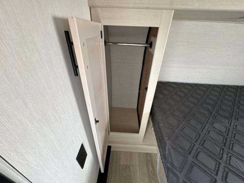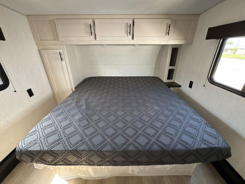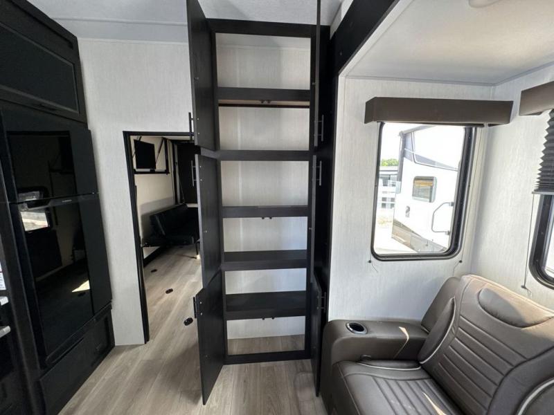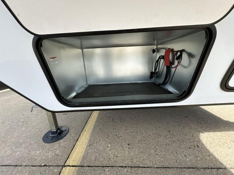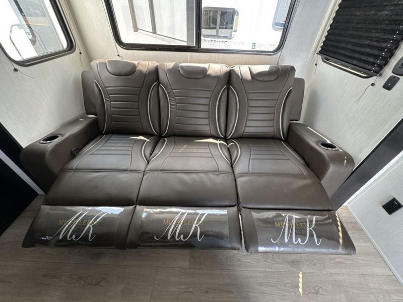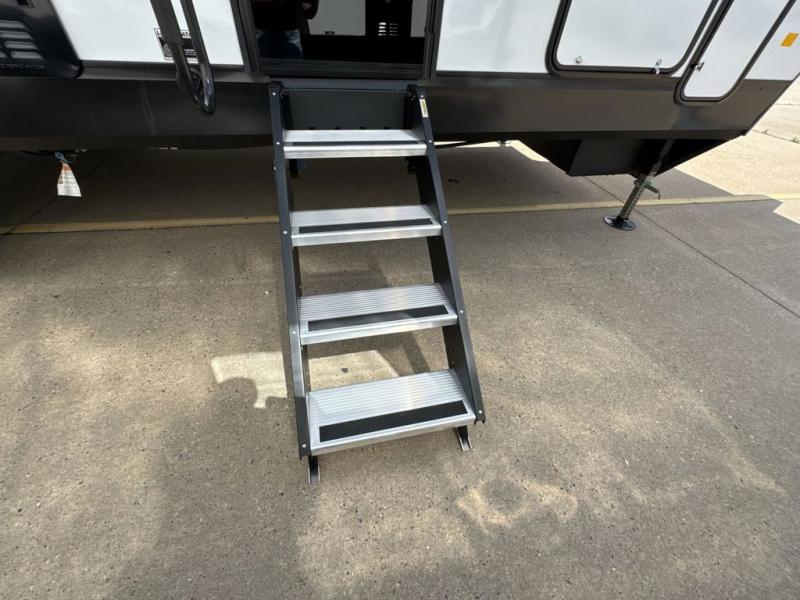 This dual entry toy hauler is perfect for weekends at the lake. The separate garage features two flip-up sofas plus a free-standing table and a quick set rear bed system for more sleeping space. There is also a TV mount here if you want to add a television and gear storage to keep your items organized. A sofa slide out in the main living area will provide comfortable seating space, and the full kitchen will let you create yummy meals. You'll love the dual entry bath that will create a front master bedroom, complete with a king bed and dual wardrobes for your clothes!