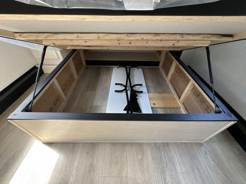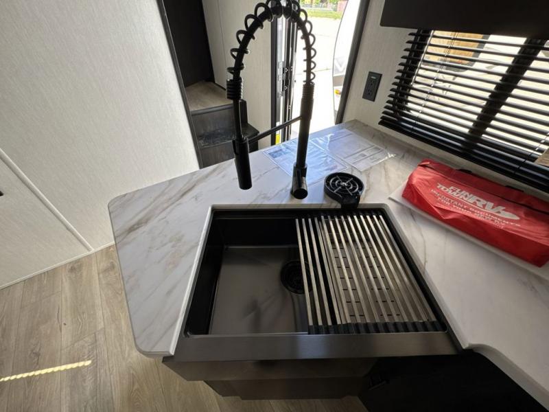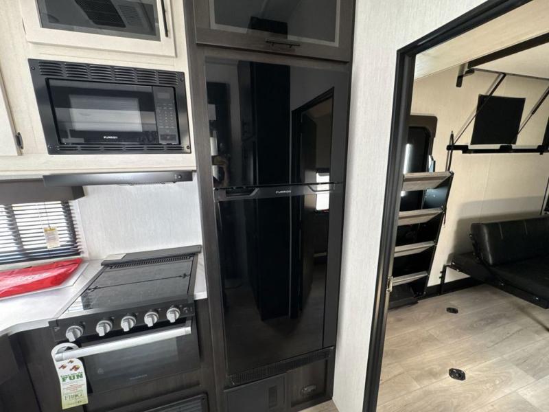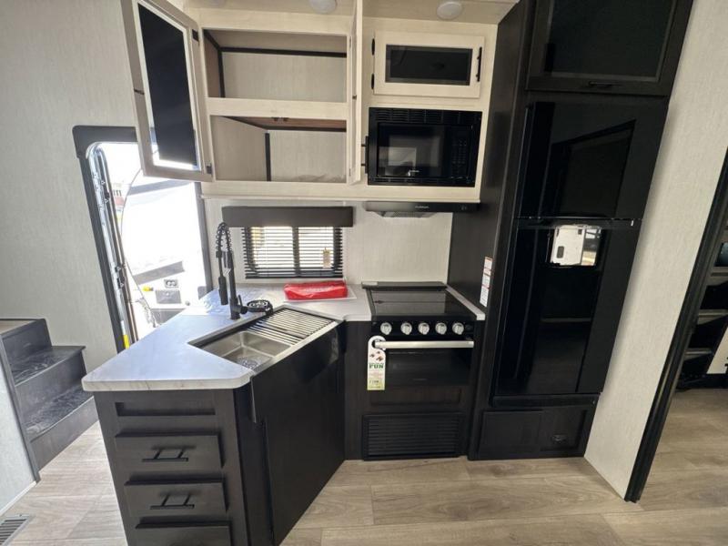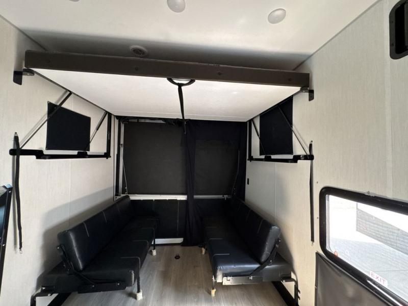 With any Vengeance Rouge SUT toy hauler travel trailer or fifth wheel by Forest River you can bring along your favorite ride-on toys, while still enjoying at-home comforts. Each one is built with a seamless roofing membrane with heat reflectivity and an armored underbelly tank enclosure for added strength and durability, and the 8' 6" wide body construction means you can bring along your favorite ride-on toys. Inside, you'll find a 1000 watt microwave and a three burner cooktop with an oven, seamless countertops, plus zebra shades that filters light and are blackout capable. These toy haulers also include 12V heat pads on all the holding tanks, a 15,000 BTU A/C unit, and many more amenities to make camping easier than ever.