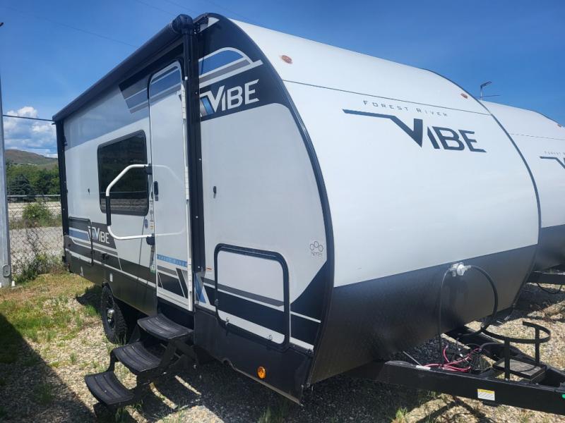 Each Vibe travel trailer by Forest River includes Hyper Lyte construction and a durable laminated "Aluma Frame" for years of use. The heated and enclosed underbelly allows you to extend your camping season, and the walk-on truss roof with XTRM PVC roofing will be easy to keep clean. Inside, you'll enjoy best-in-class panoramic windows, a 12V oversized refrigerator, plus screwed and glued cabinets with residential steel ball bearing drawer guides on all drawers. These models also include cable and satellite prep and a digital TV antenna with a booster so you can stay connected to the outside world if you choose. Make the easy choice and choose a Vibe travel trailer today!